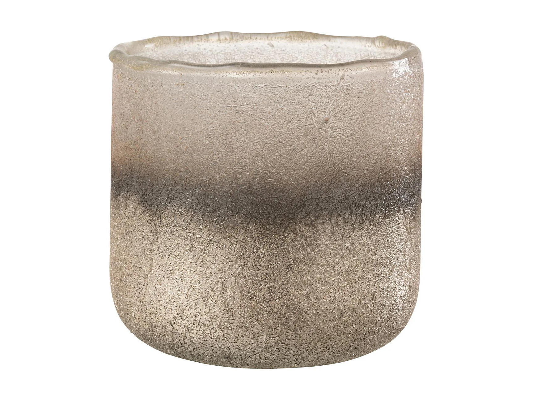Portavelas redondo de vidrio ahumado amarillo plata 13x13x14cm