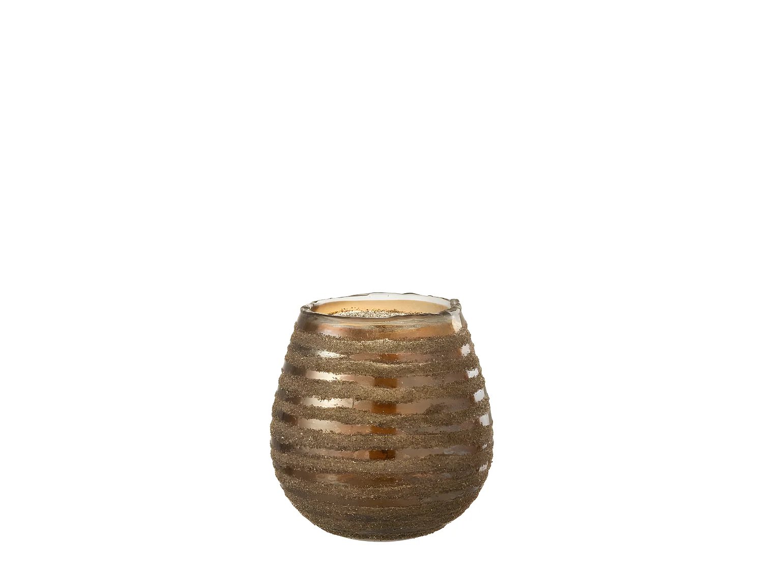 Portavelas irregular de vidrio marrón 15x15x17cm