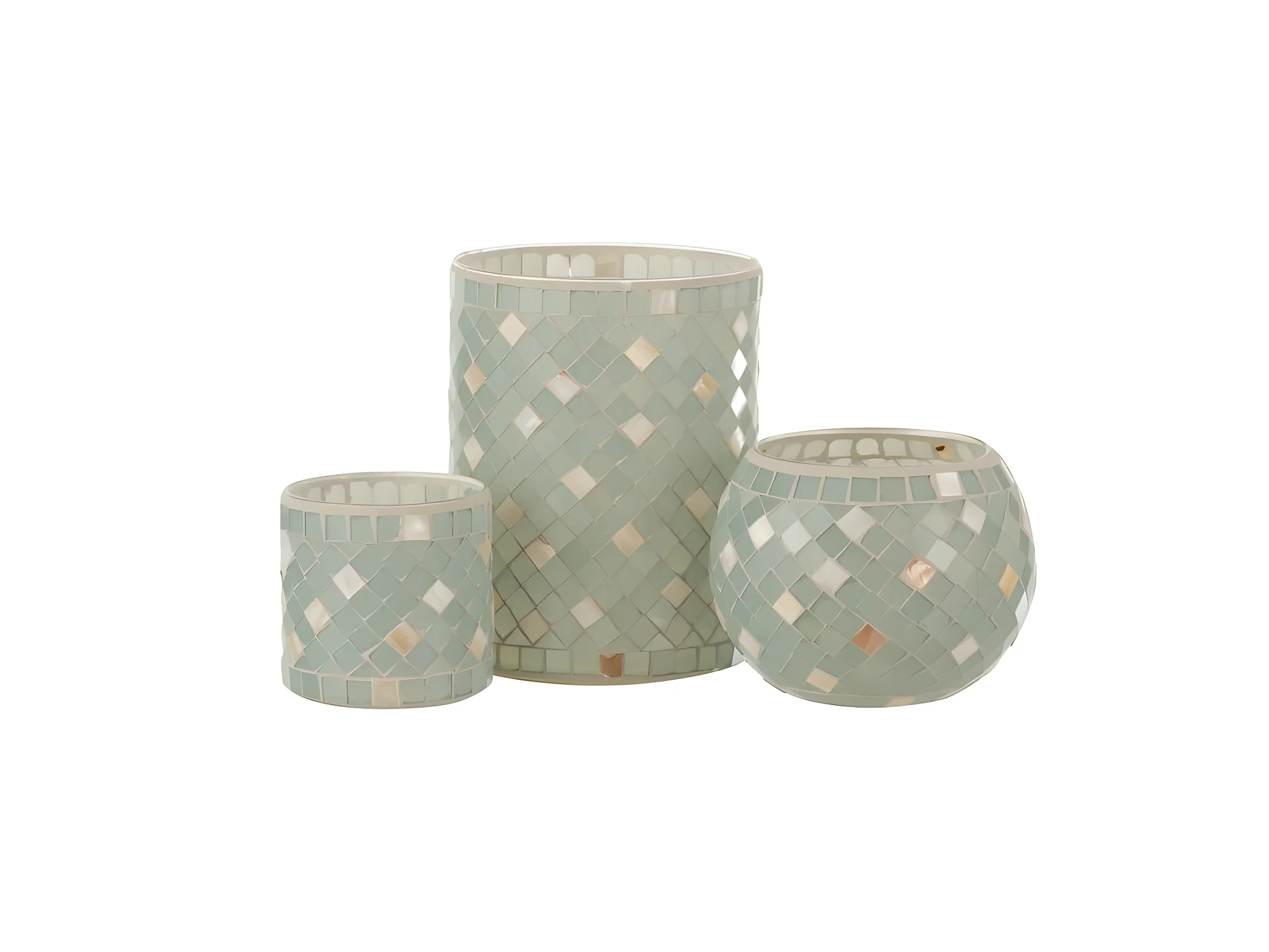 Portavelas mosaicos redondo cristal gris/nácar 15