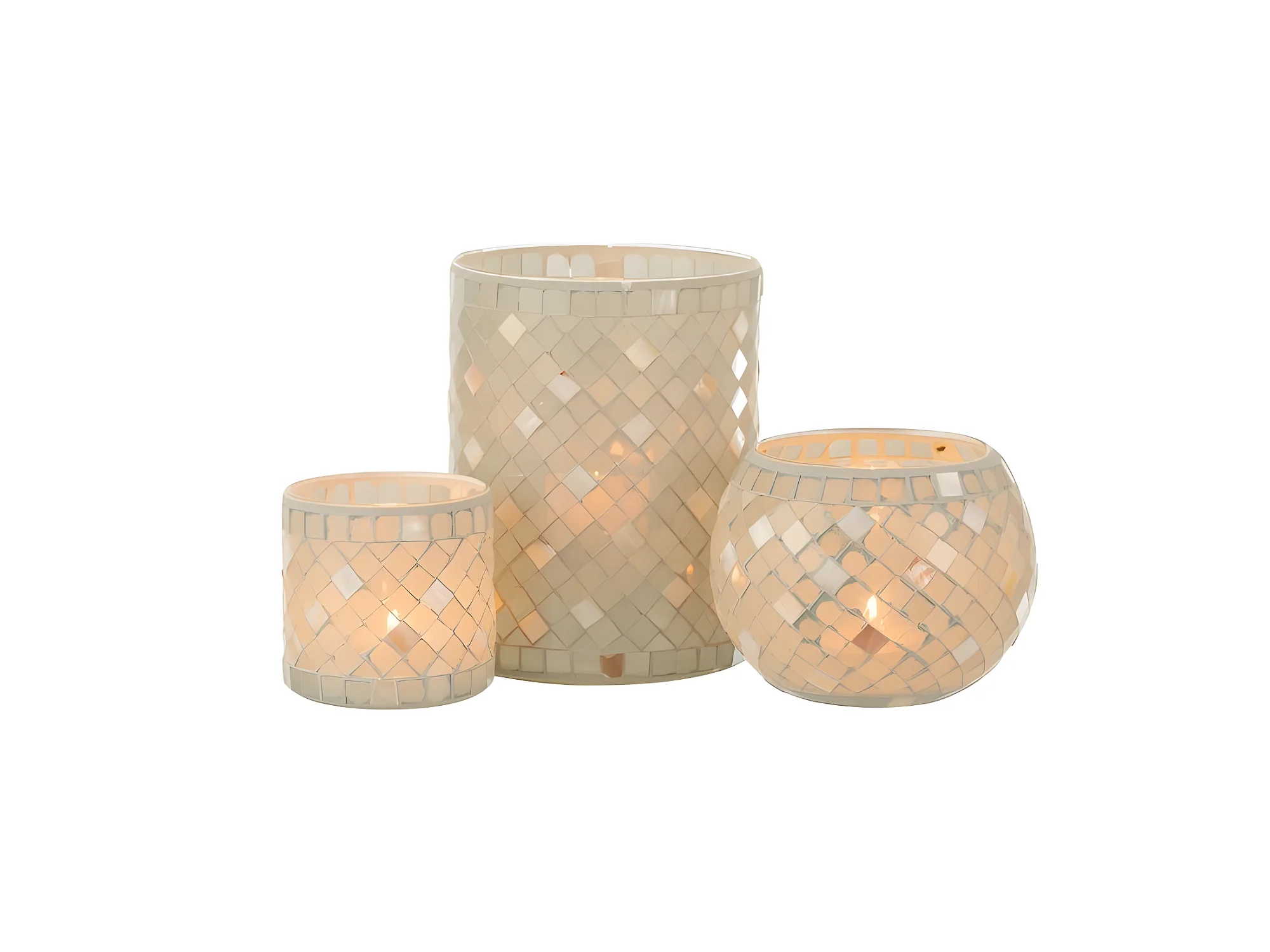 Portavelas mosaicos recto cristal gris/nácar 15x15 cm