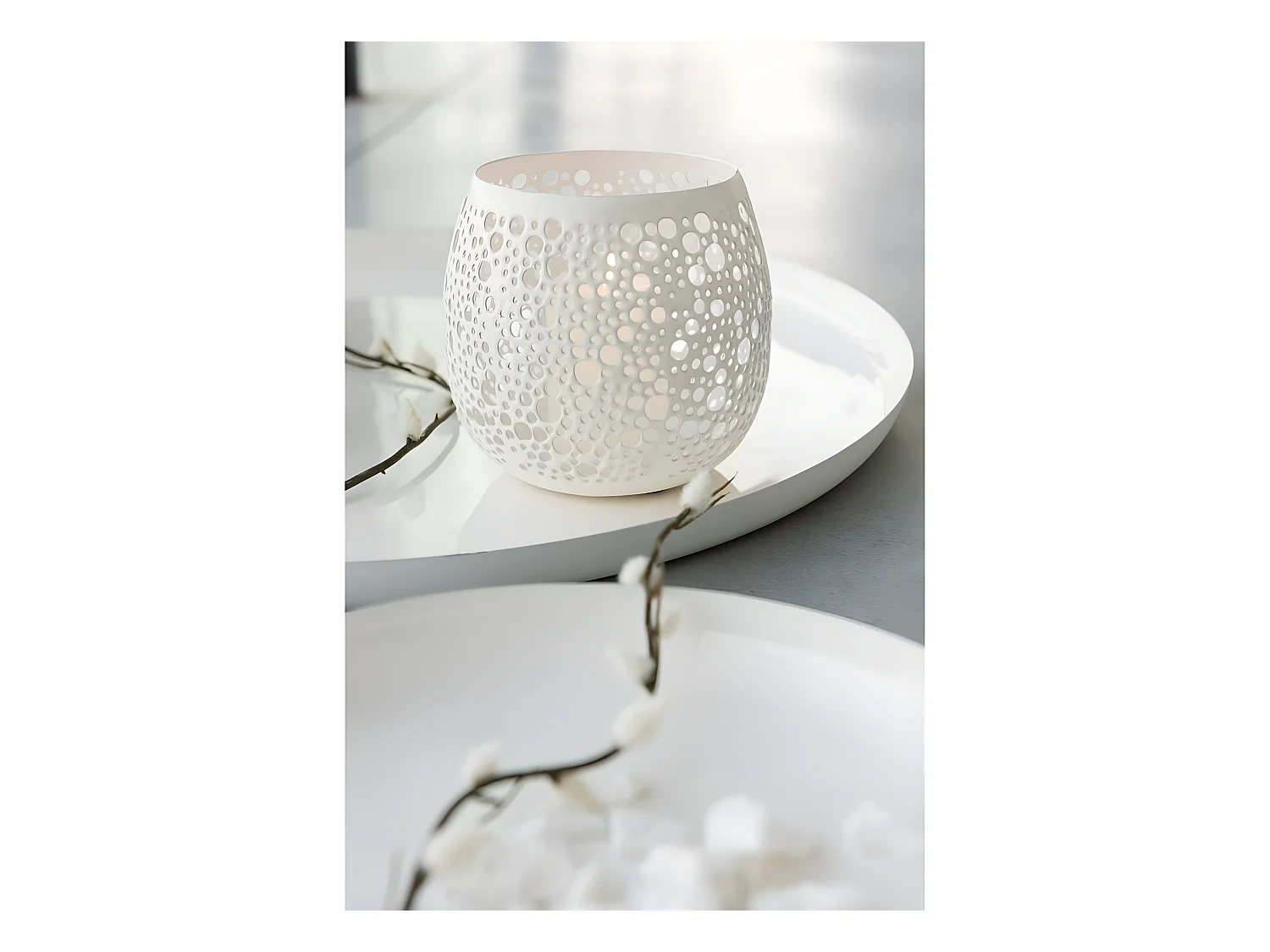 Fotóforo perforado metal laca blanco Alt. 12 cm