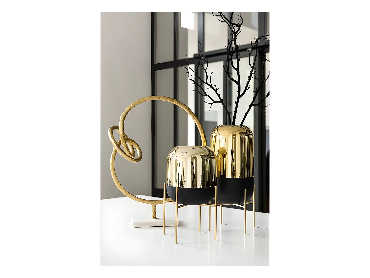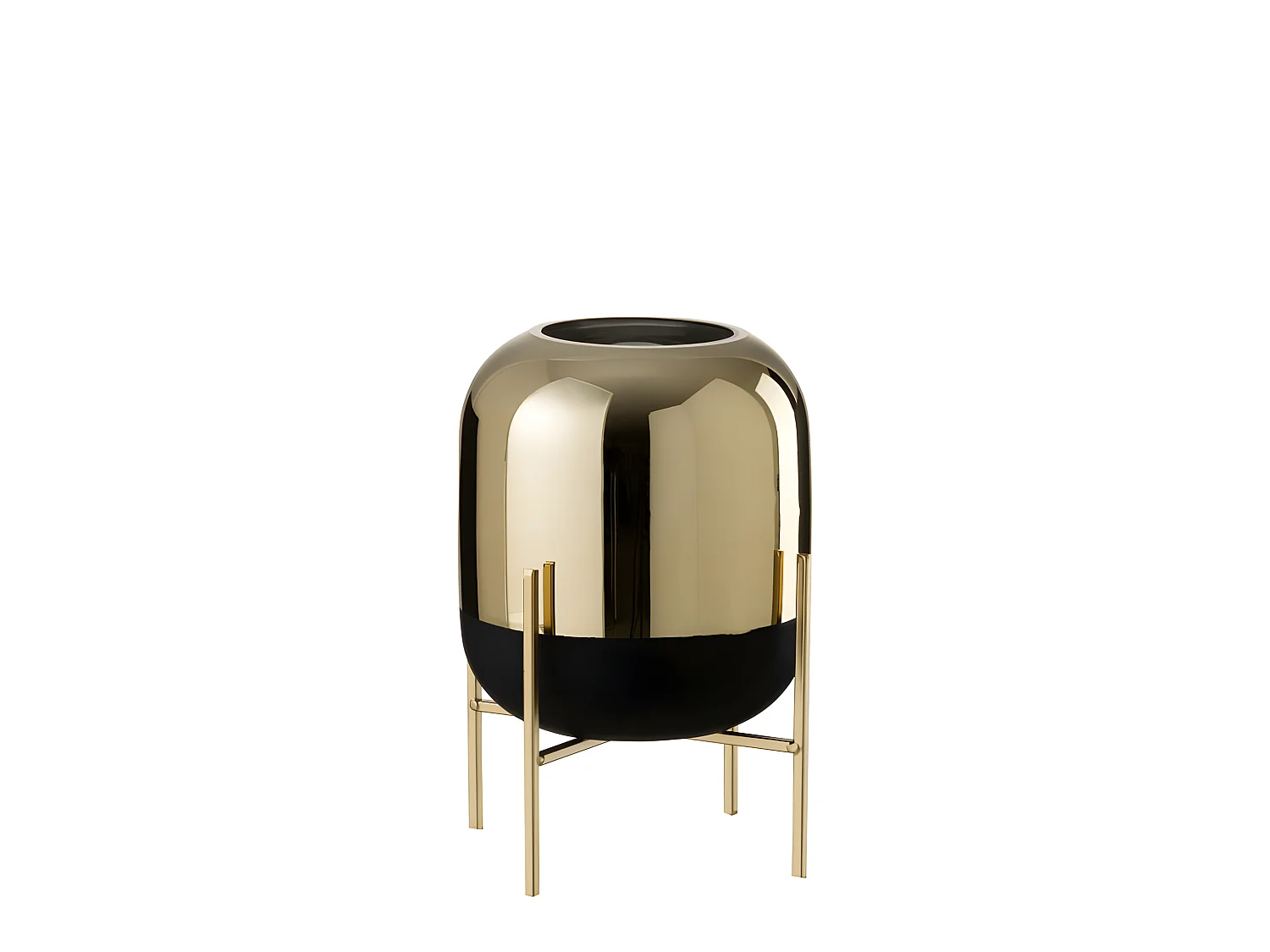 Portavelas + pie cristal negro/oro Alt. 27 cm
