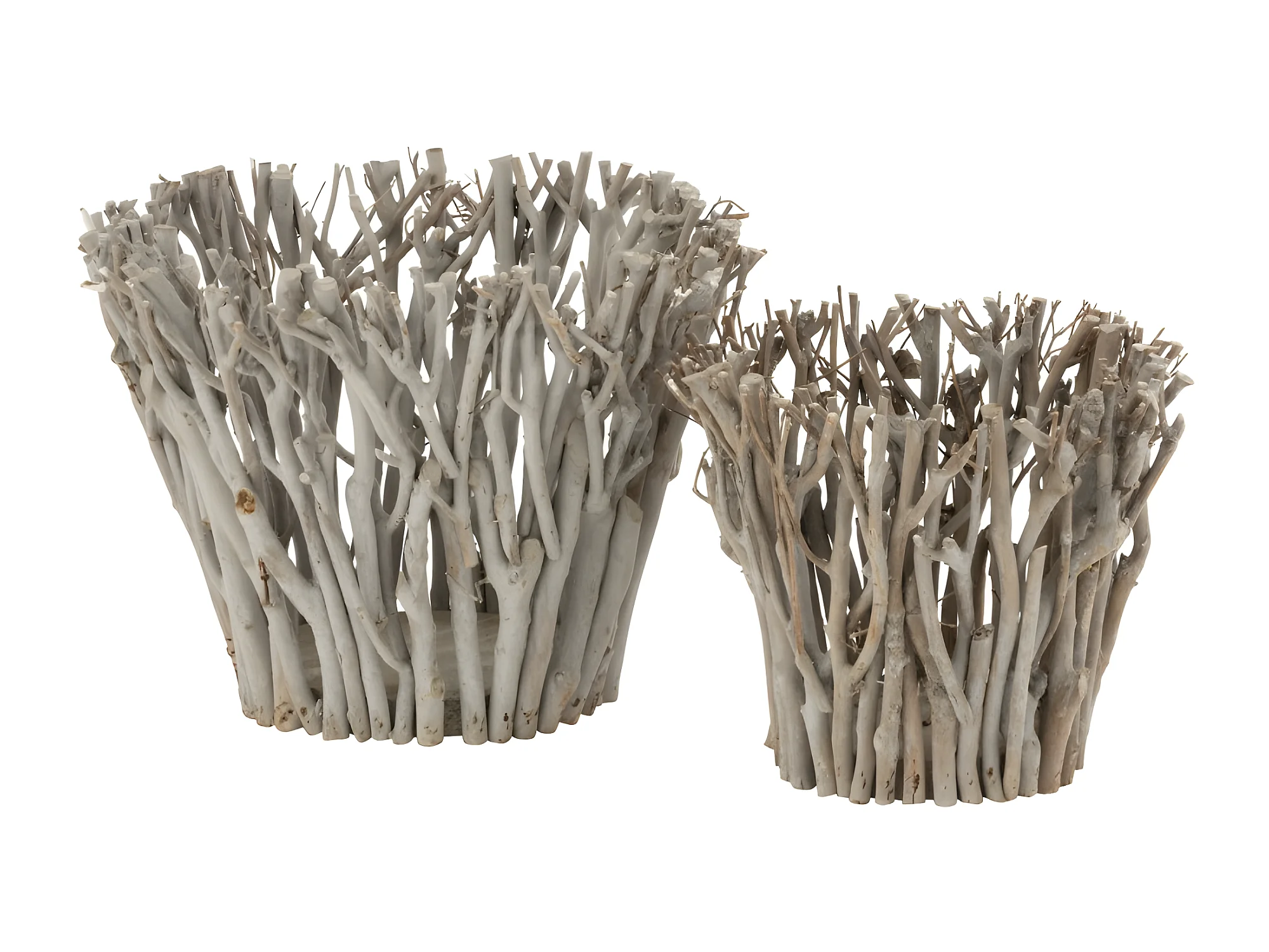 Portavelas ramas con vidrio madera gris Alt. 30 cm