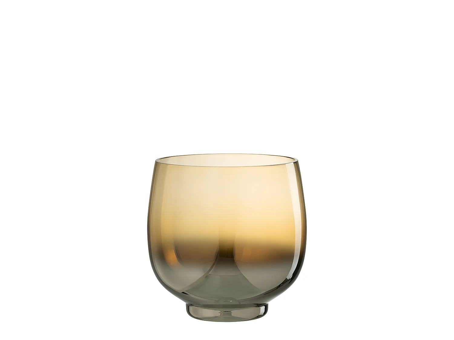 Portavelas redondo de vidrio ahumado amarillo plata 13x13x14cm