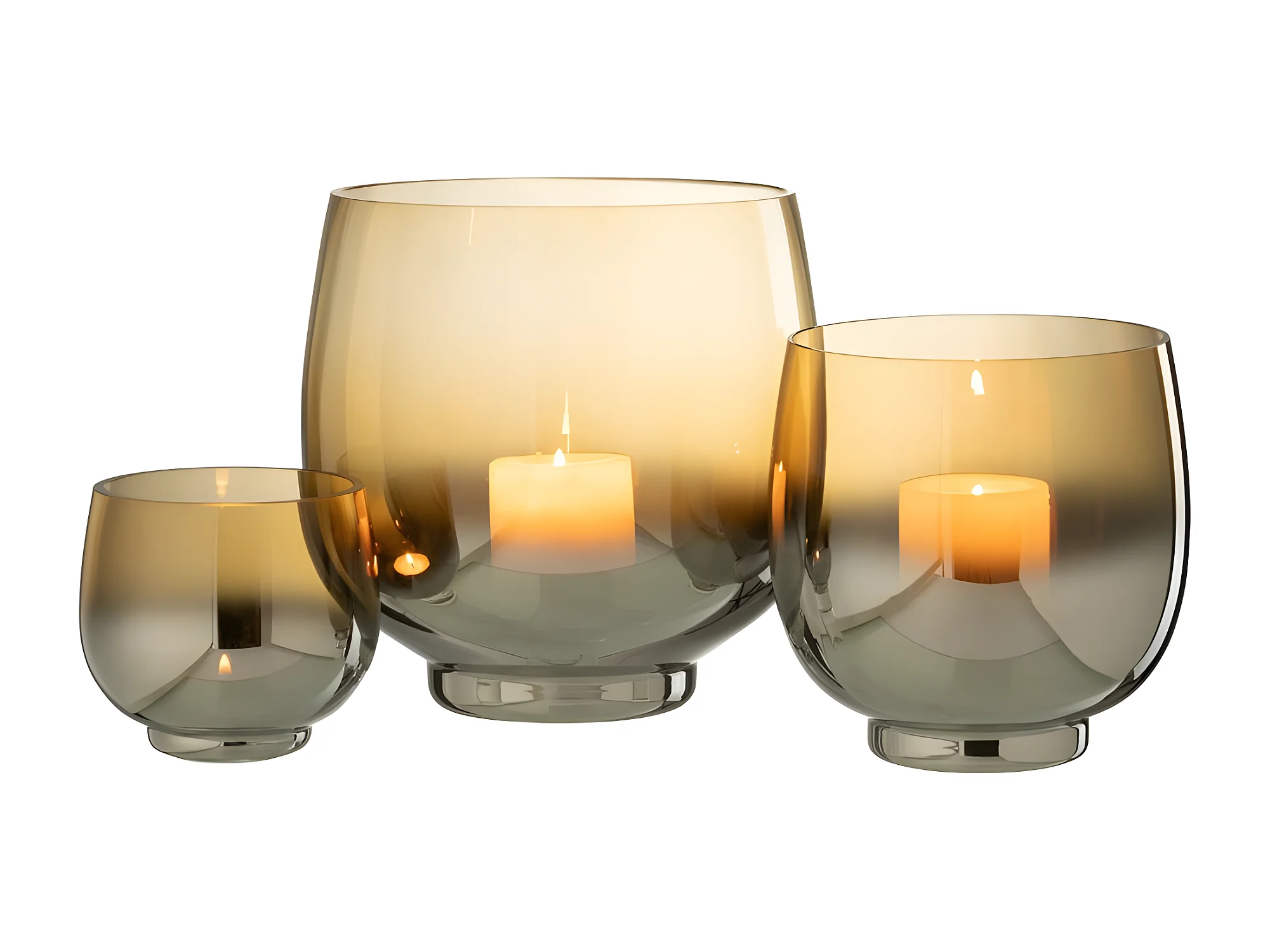 Portavelas redondo de vidrio ahumado amarillo plata de 17x17x18cm