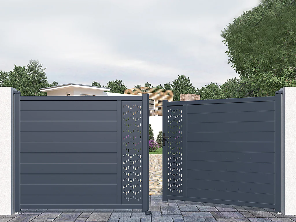 Portón aluminio Ancho 397 x Alt. 181 cm antracita GREGOR