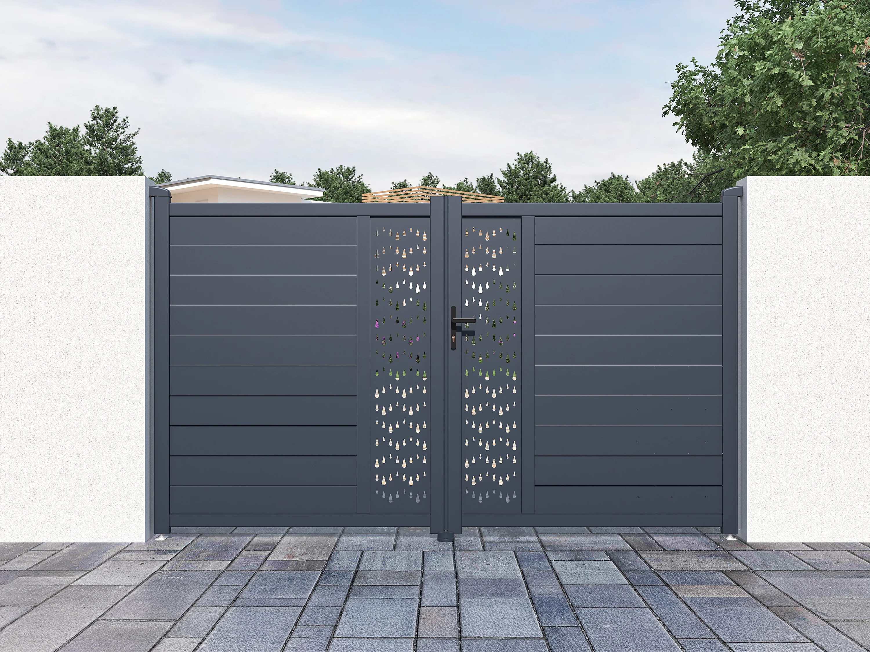 Portón batiente eléctrico de aluminio Ancho 305 x Alt. 181 cm antracita GREGOR