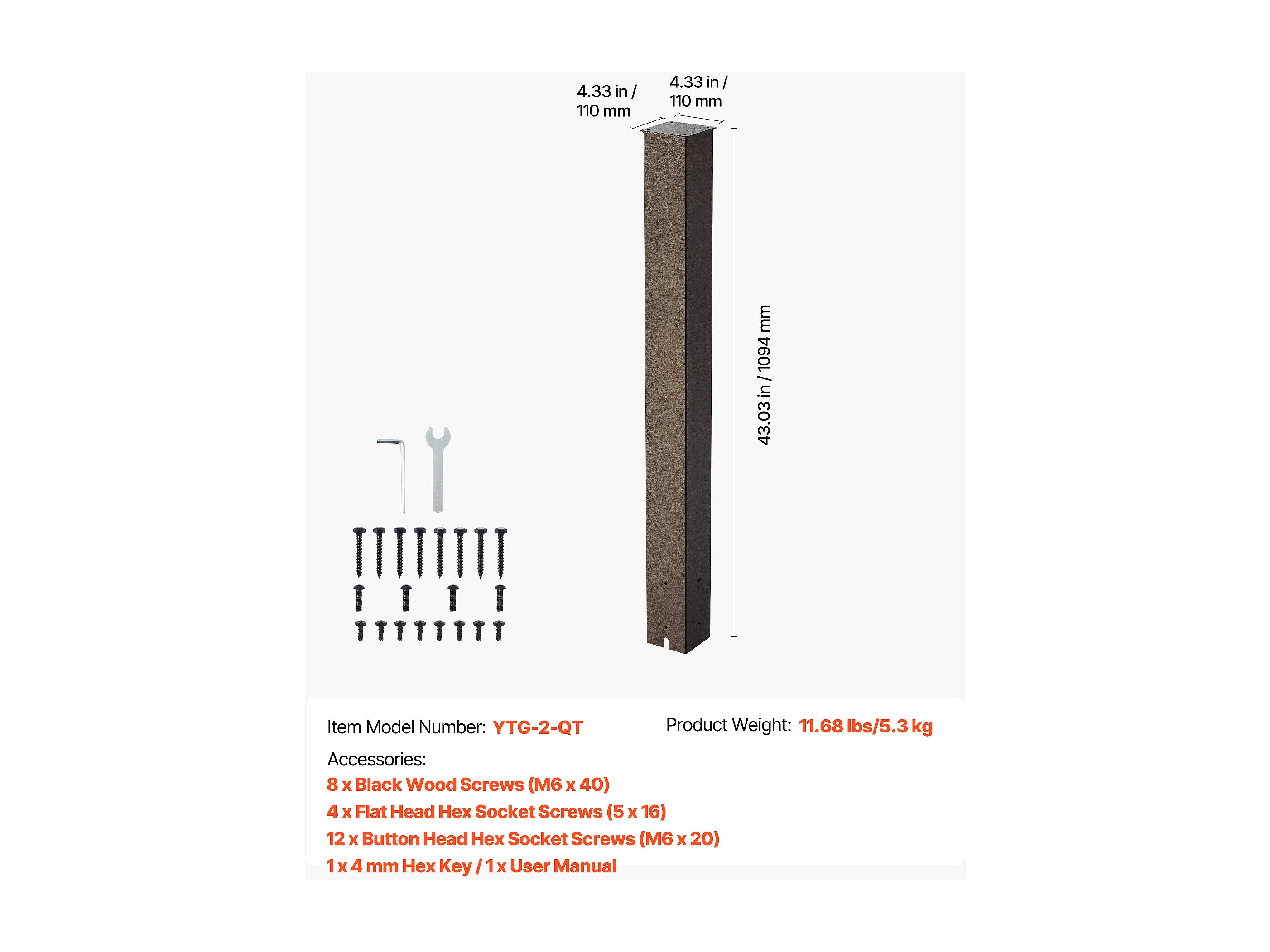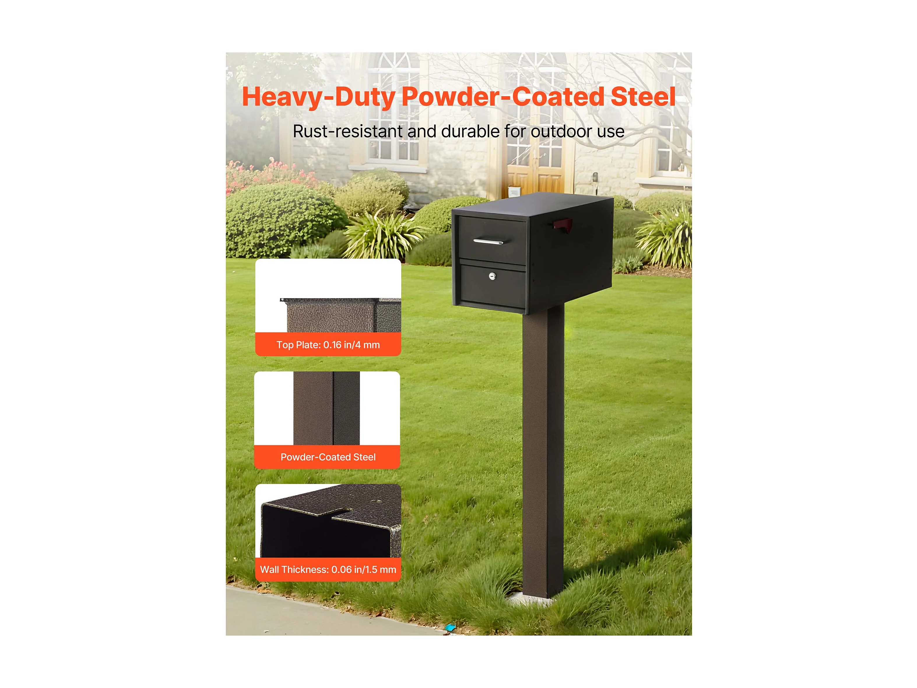 Poste de Buzón SucceBuy, 109,4 x 11 x 11 cm, Soporte de Buzón Empotrado de Acero con Revestimiento en Polvo, Kit de Poste Metálico