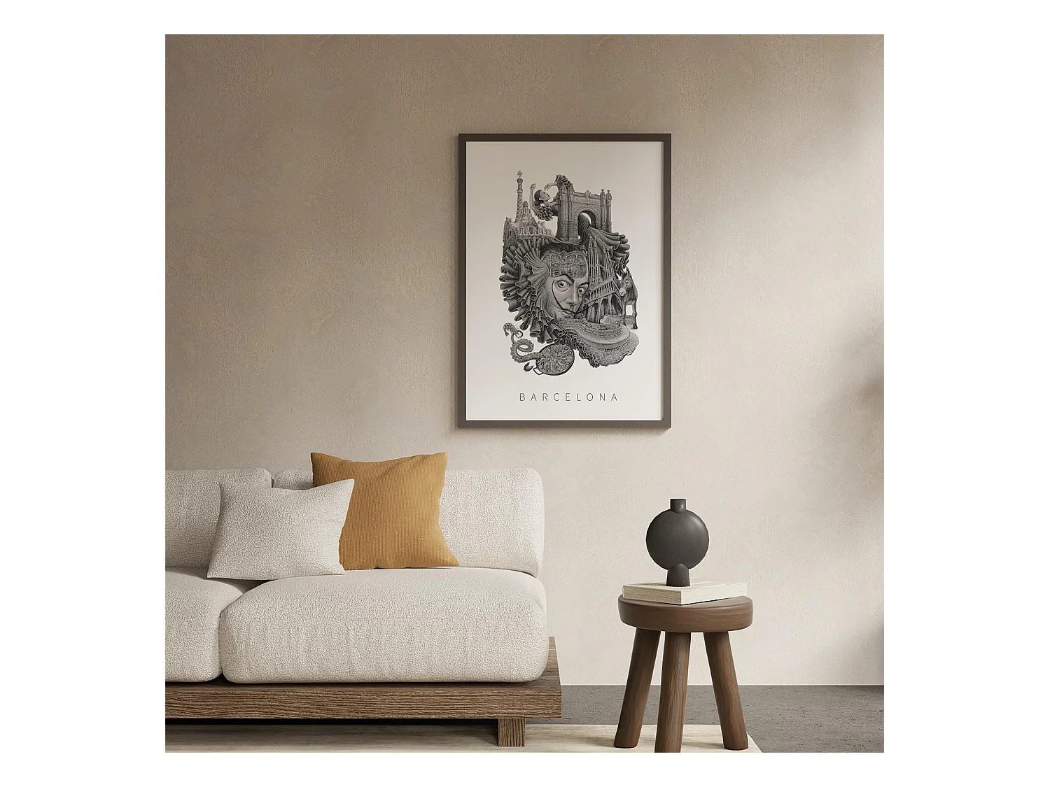 Póster, decoración española vibrante, arte de Barcelona, impresión minimalista de la ciudad de Barcelona, 21x29,7 cm.