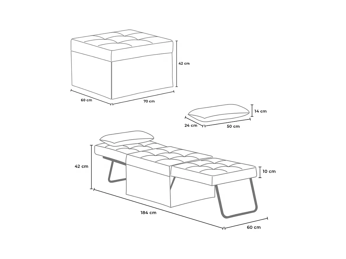 Pouf cama plegable en tejido Sweet Relax - Gris Oscuro
