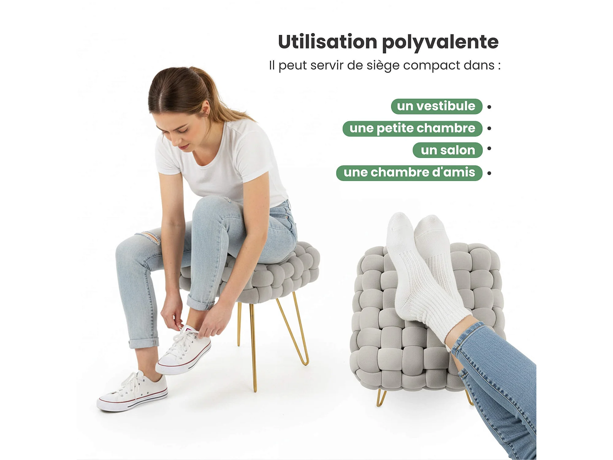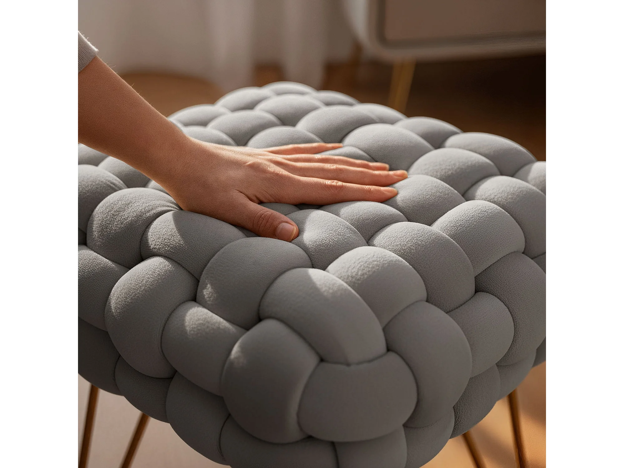 Pouf taburete de terciopelo trenzado 38 cm DOTTY Gris Claro