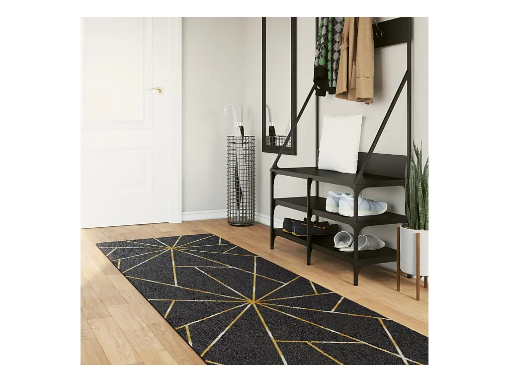 Elsje Alfombra lavable antideslizante negro y dorado 80x300 cm