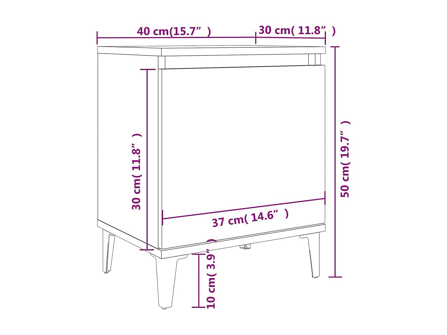 Silo Mesita de noche con patas de metal gris Sonoma 40x30x50 cm