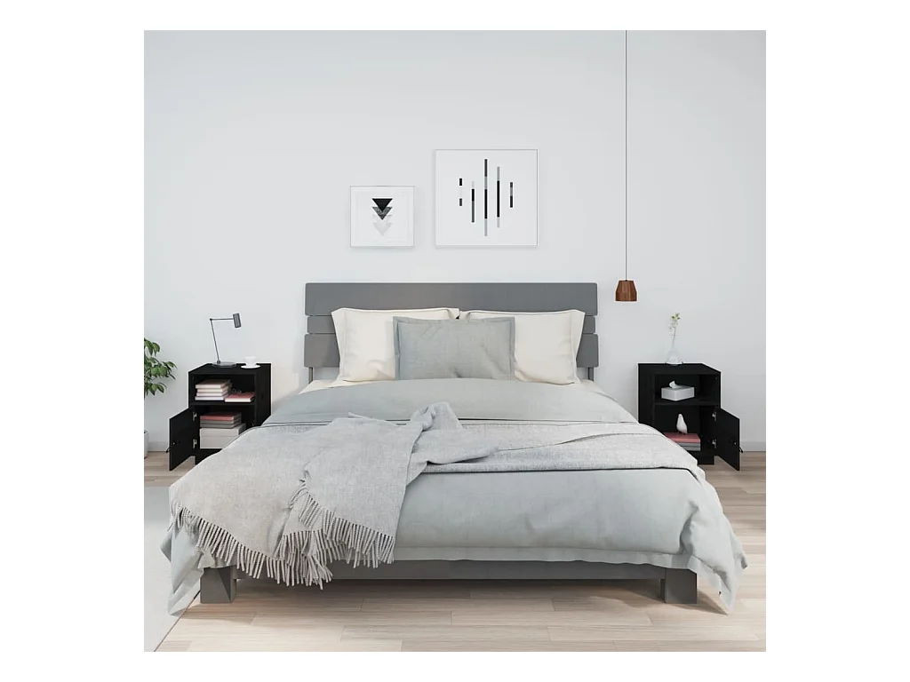 Lydar Mesitas de noche 2 uds madera maciza de pino negro 40x34x45 cm