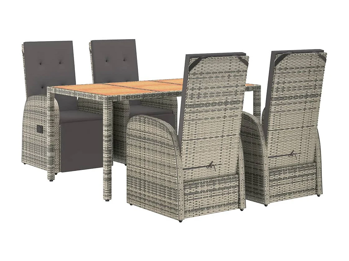 Prolenta Premium - Set comedor de jardín 5 piezas con cojines ratán sintético gris