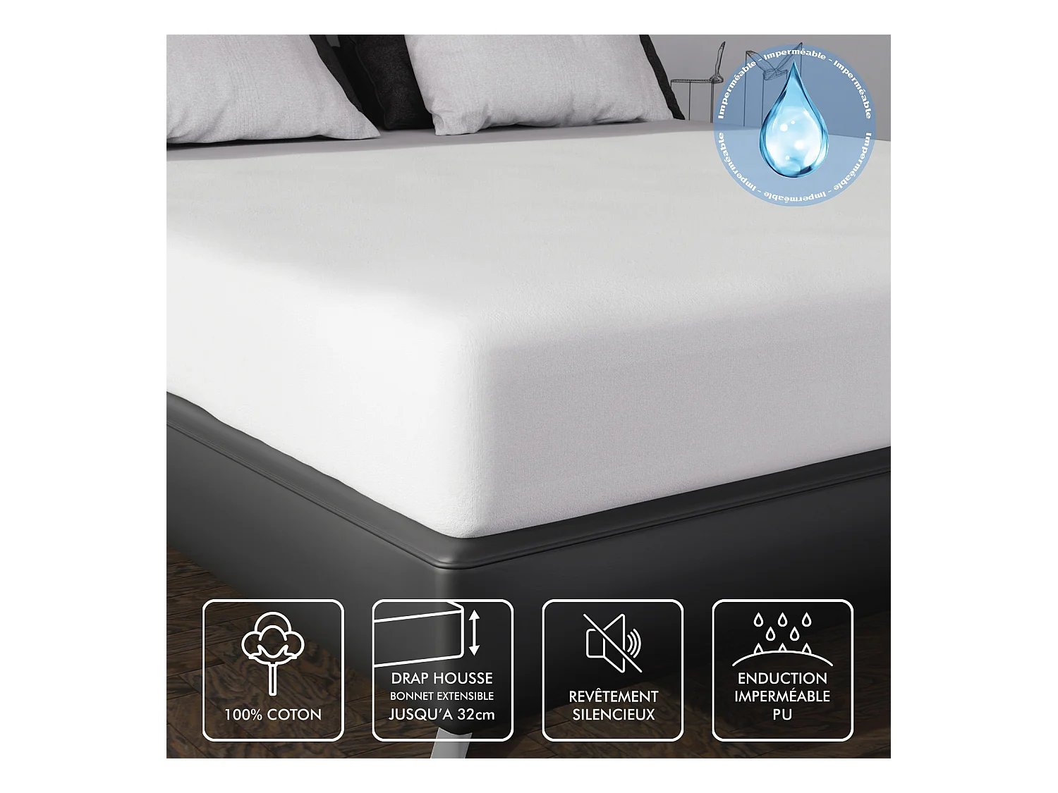 Alese forme housse imperméable Transalese éponge 100% coton - 90 x 200 cm - Blanc