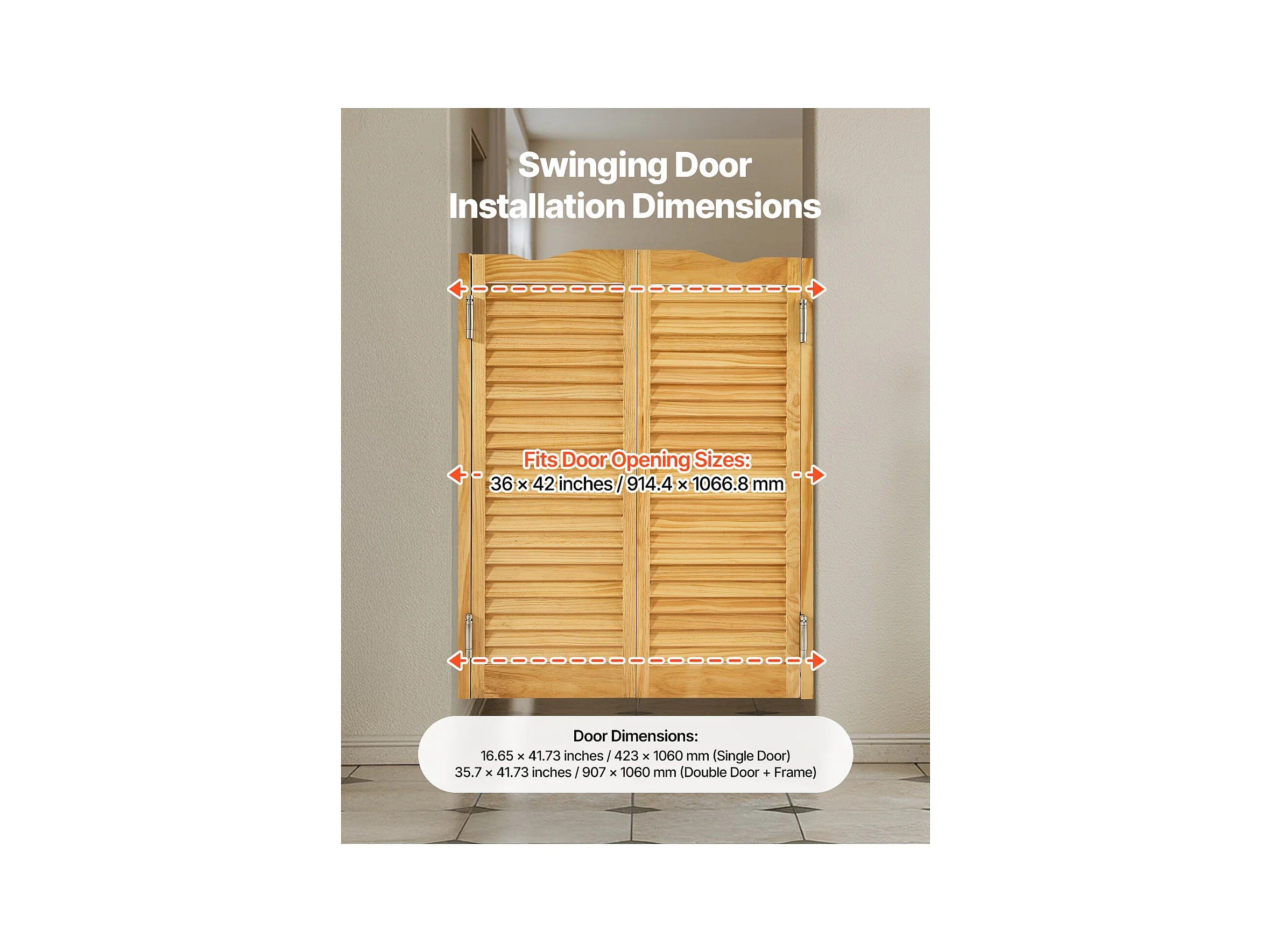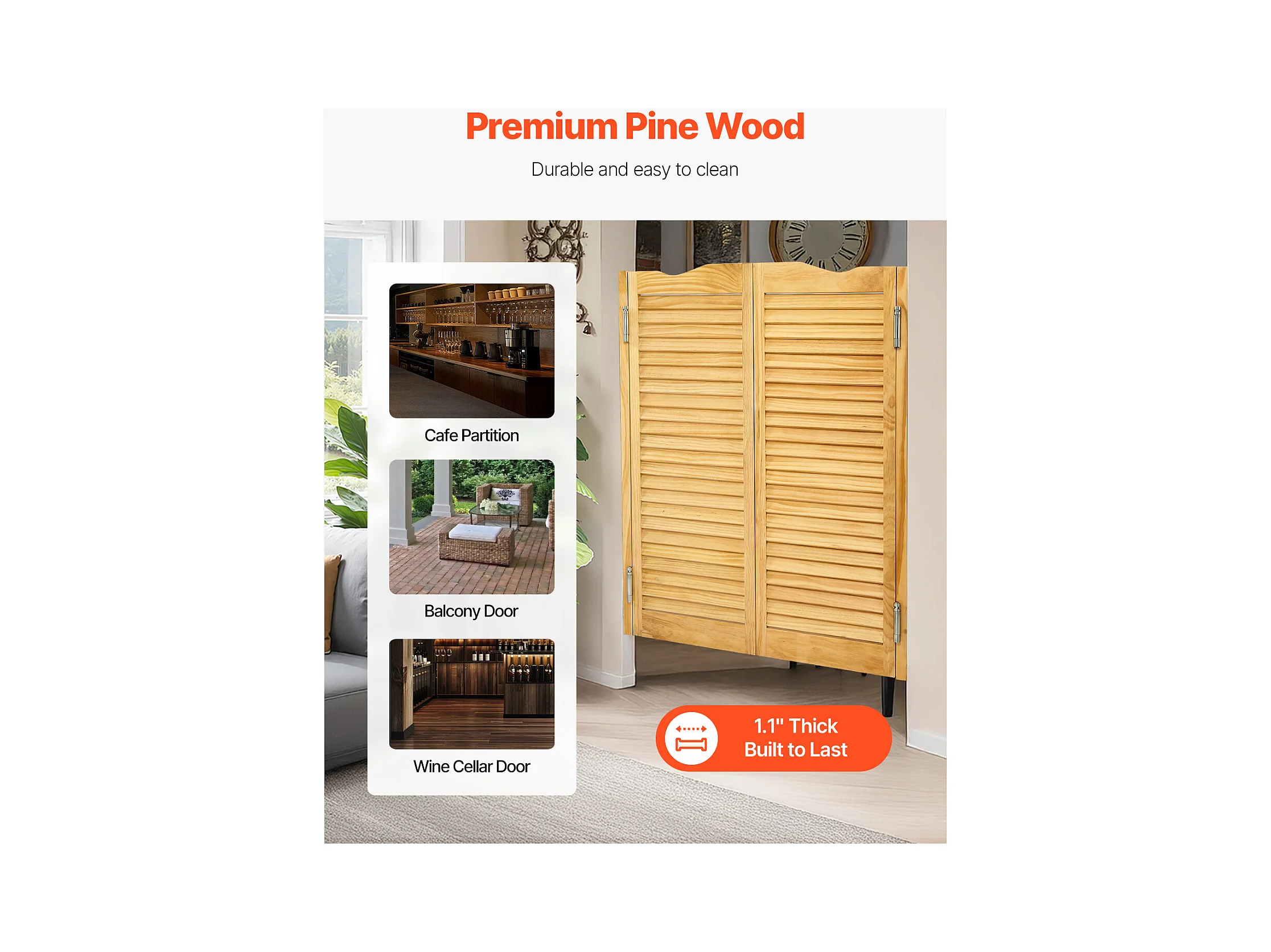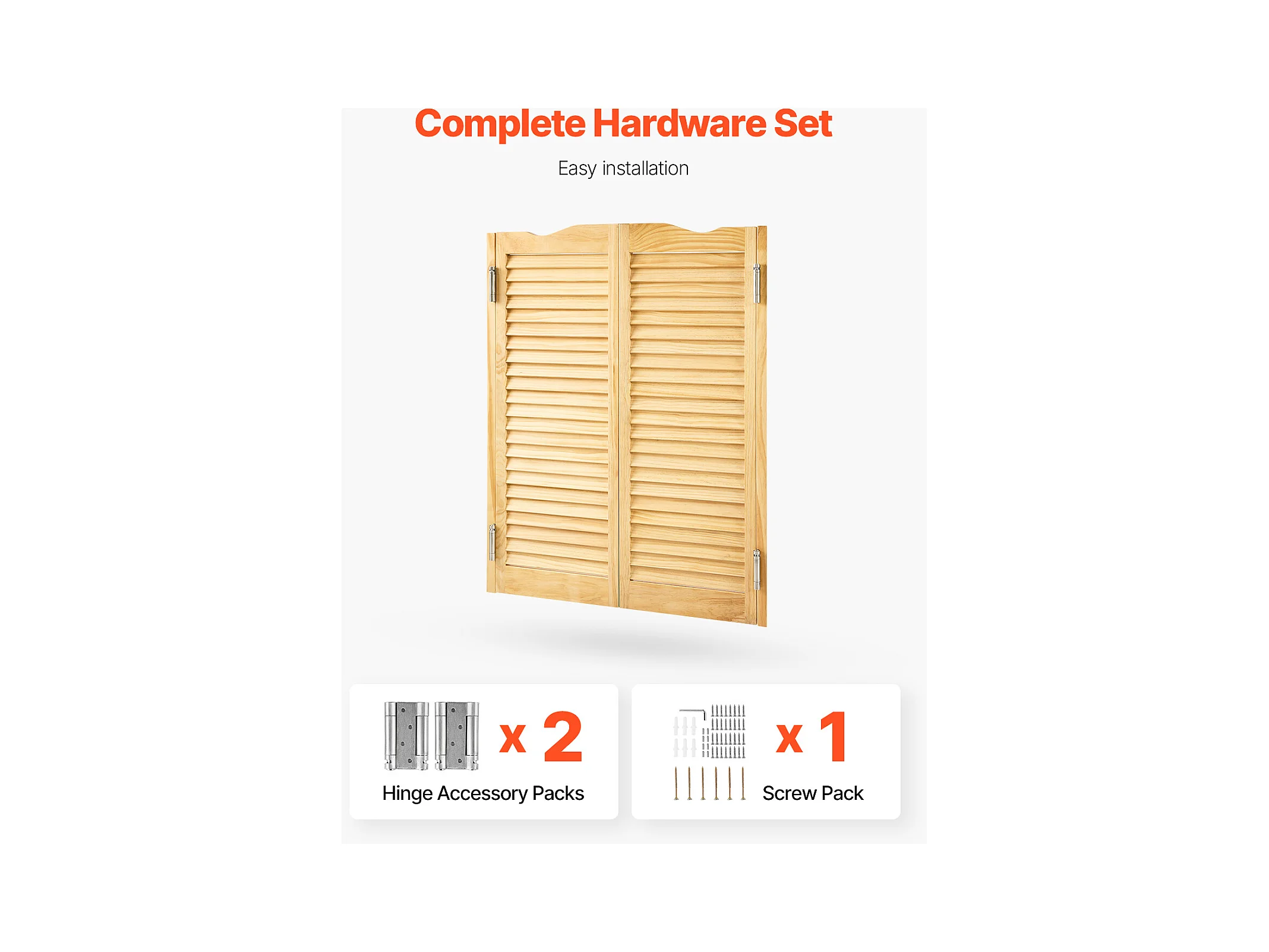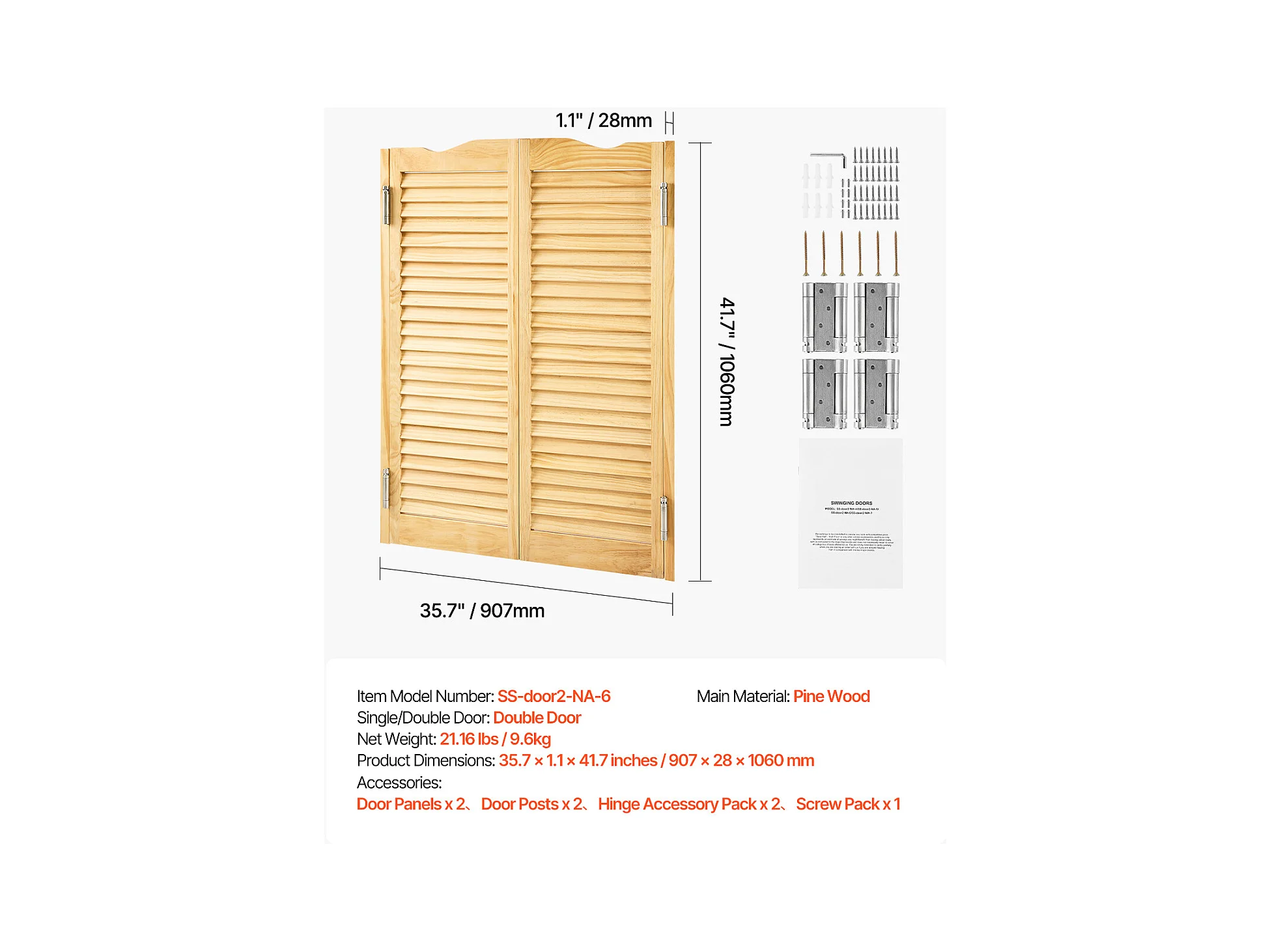 Puerta Batiente Doble SucceBuy, 90,7 x 2,8 x 10,6 cm, de Pino, con Bisagras, Herrajes, Fácil de Instalar, Color Madera