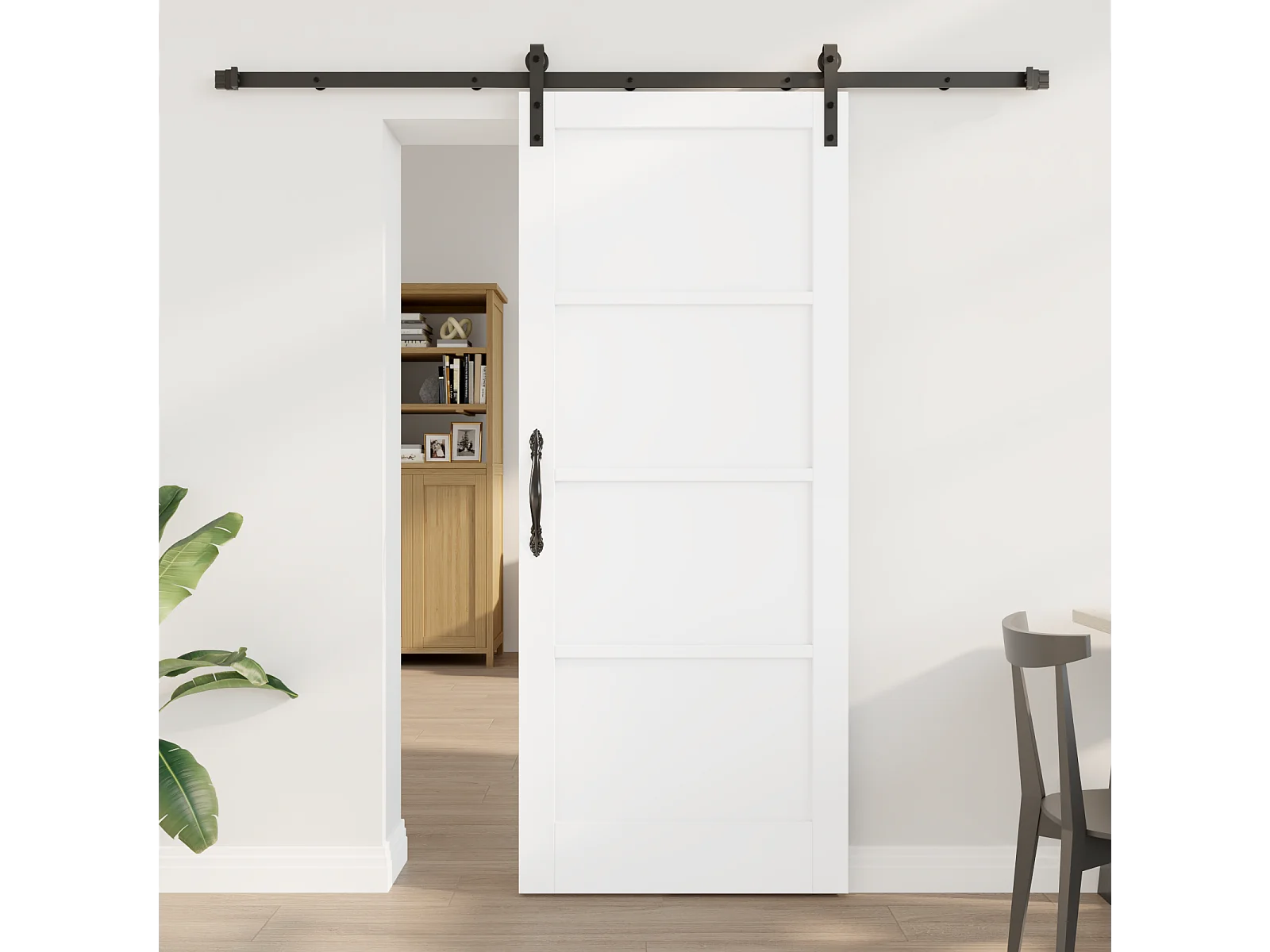 Puerta corredera con herrajes blancos 83x202 cm Madera maciza de pino