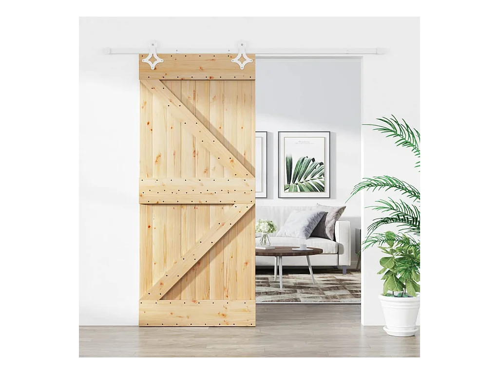 Puerta corredera con herrajes madera maciza de pino 90x210 cm ES905082