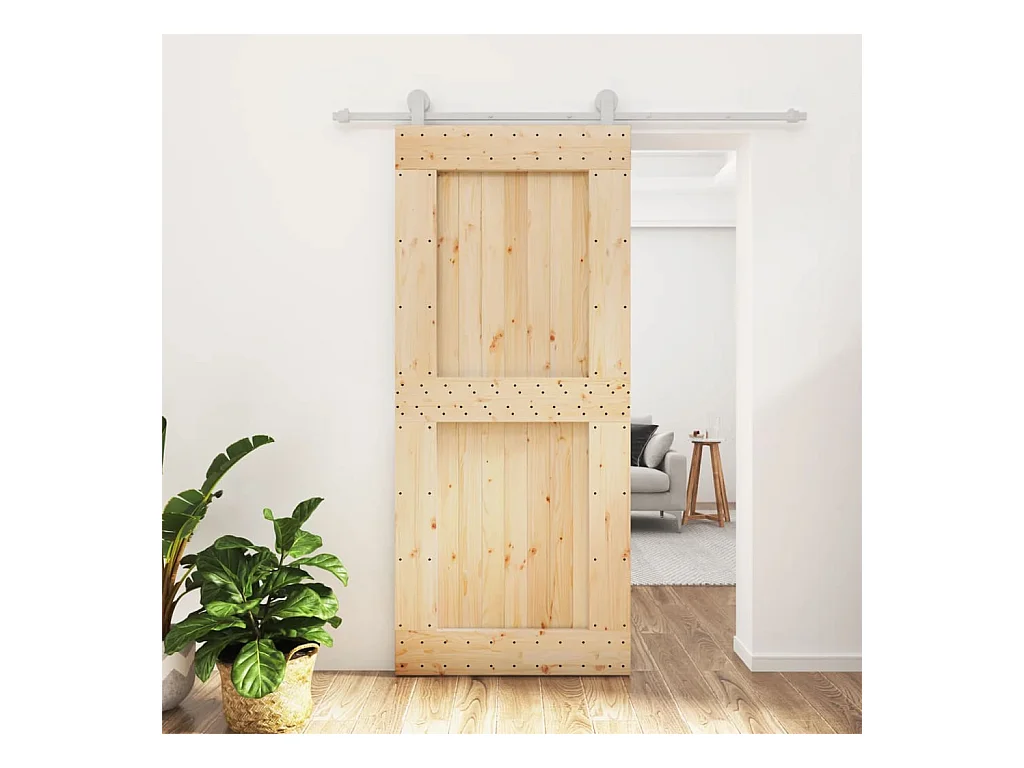 Puerta corredera con herrajes madera maciza de pino 90x210 cm ES905082