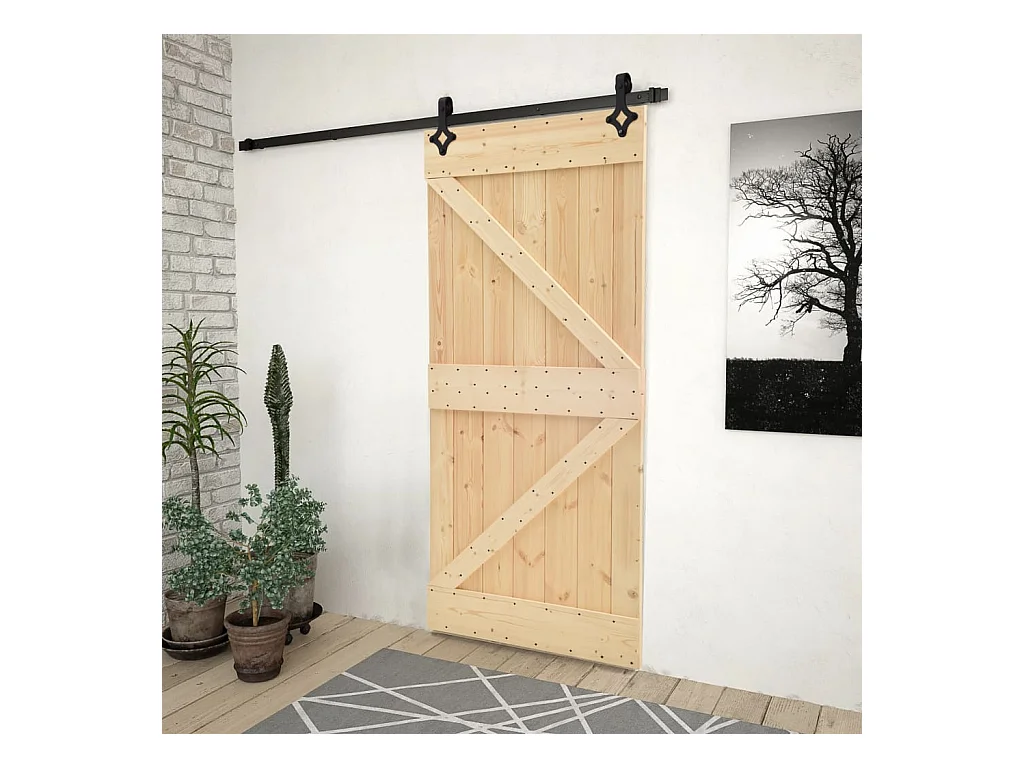 Kit puerta corredera y herrajes 90x210 cm pino macizo