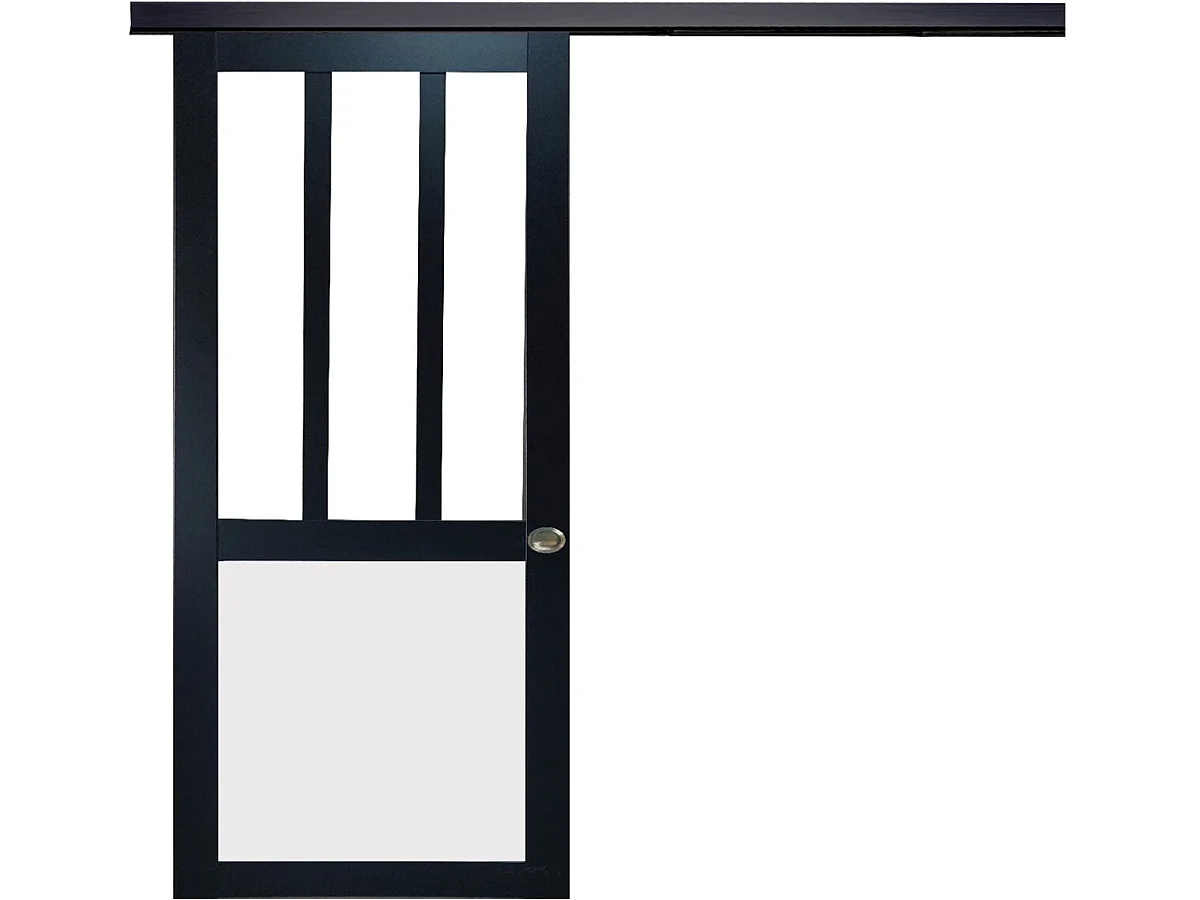 Puerta corredera de taller negra y paneles blancos Vitree H204 x L83 + Riel de aluminio negro y 2 carcasas
