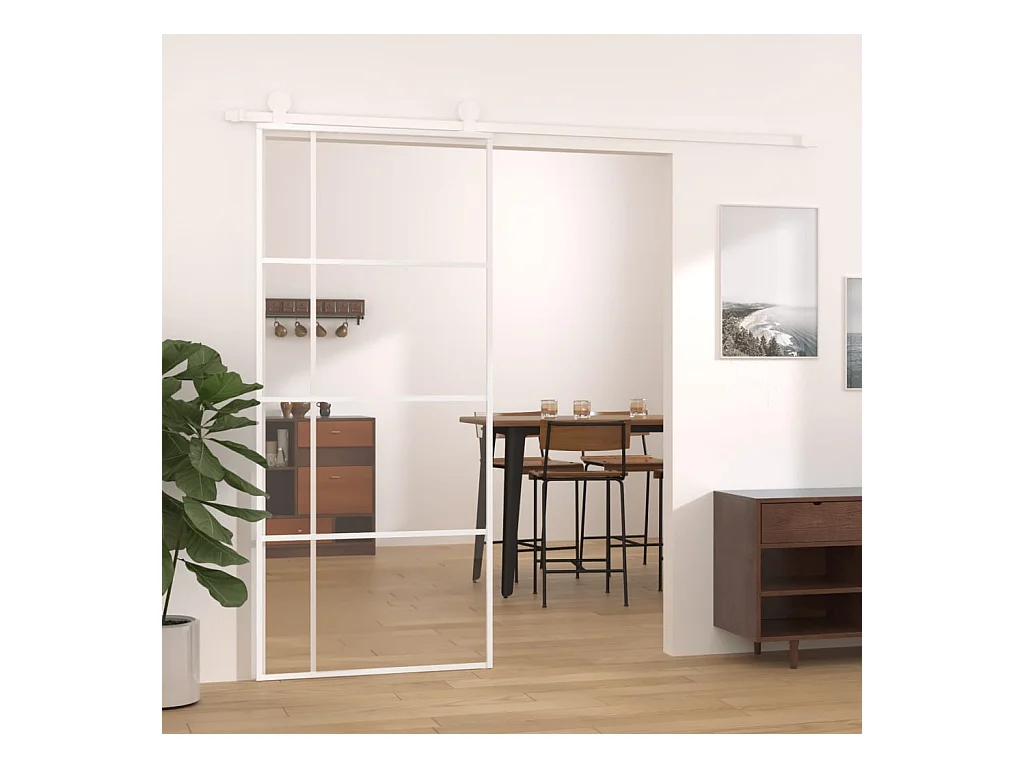 Puerta corredera ESG cristal y aluminio 90x205 cm Blanco