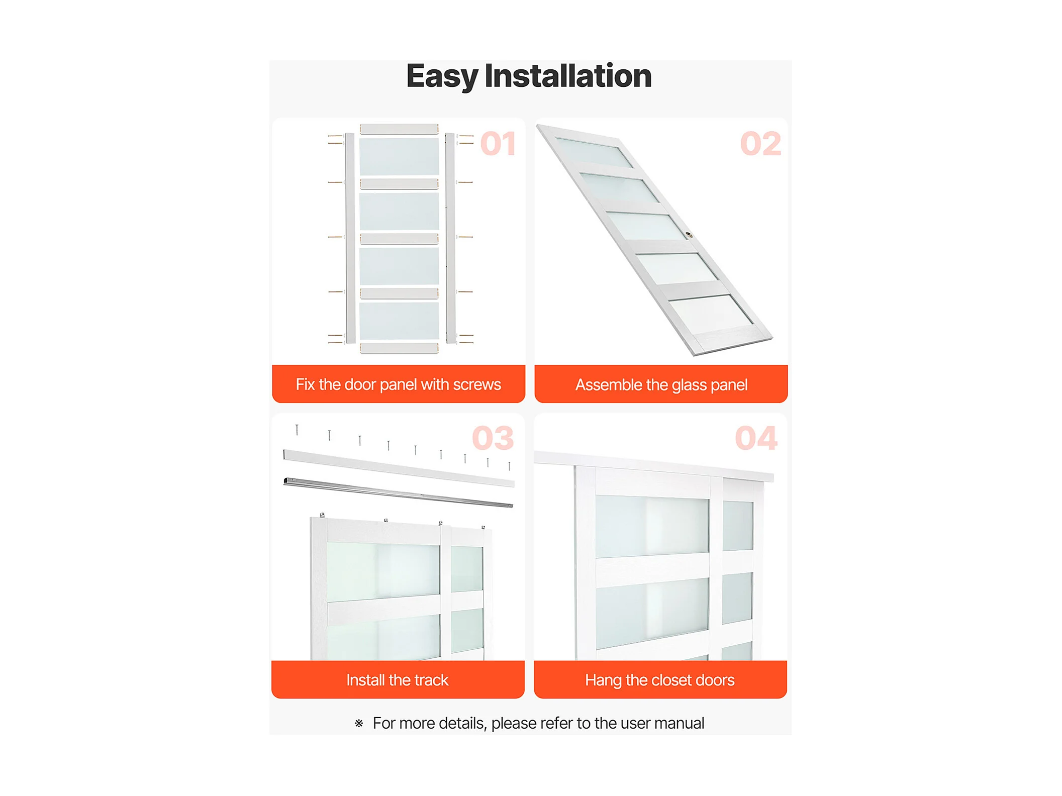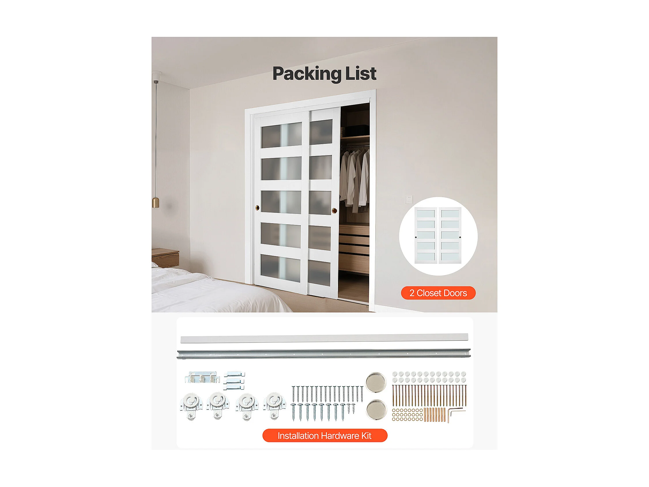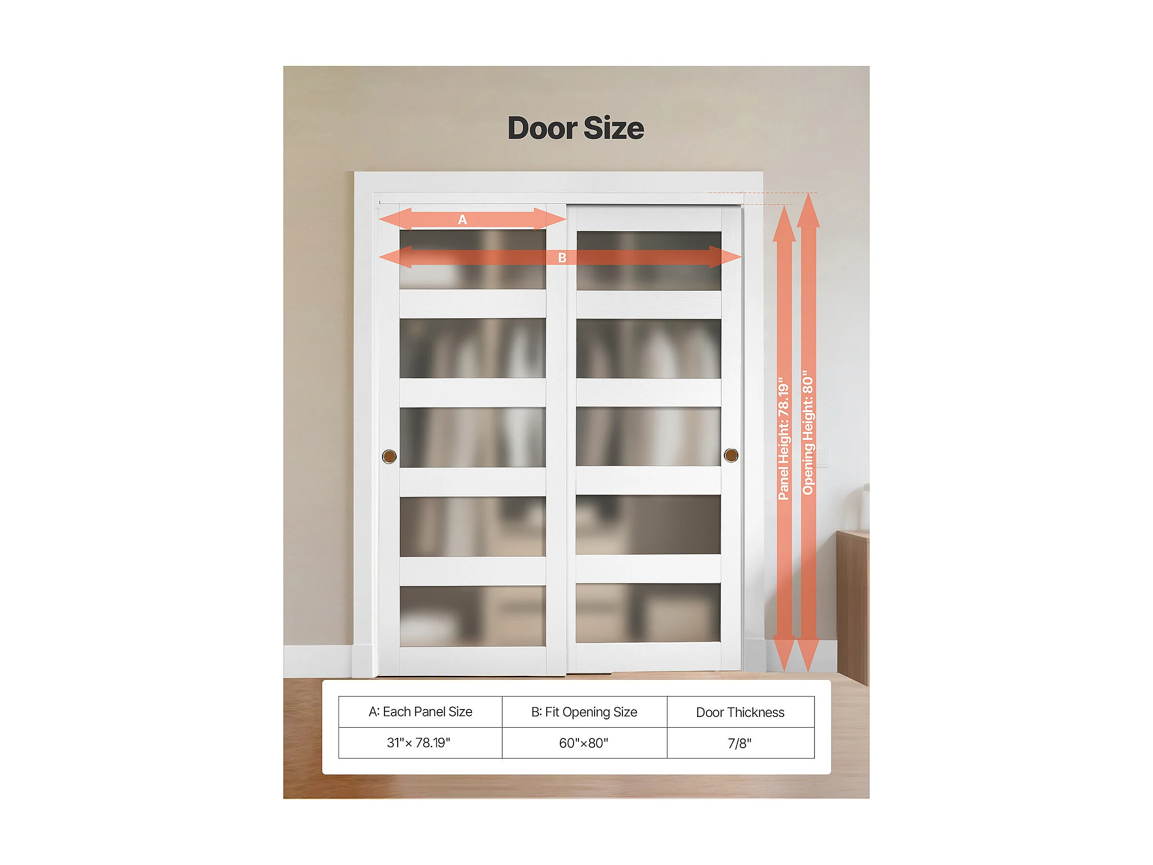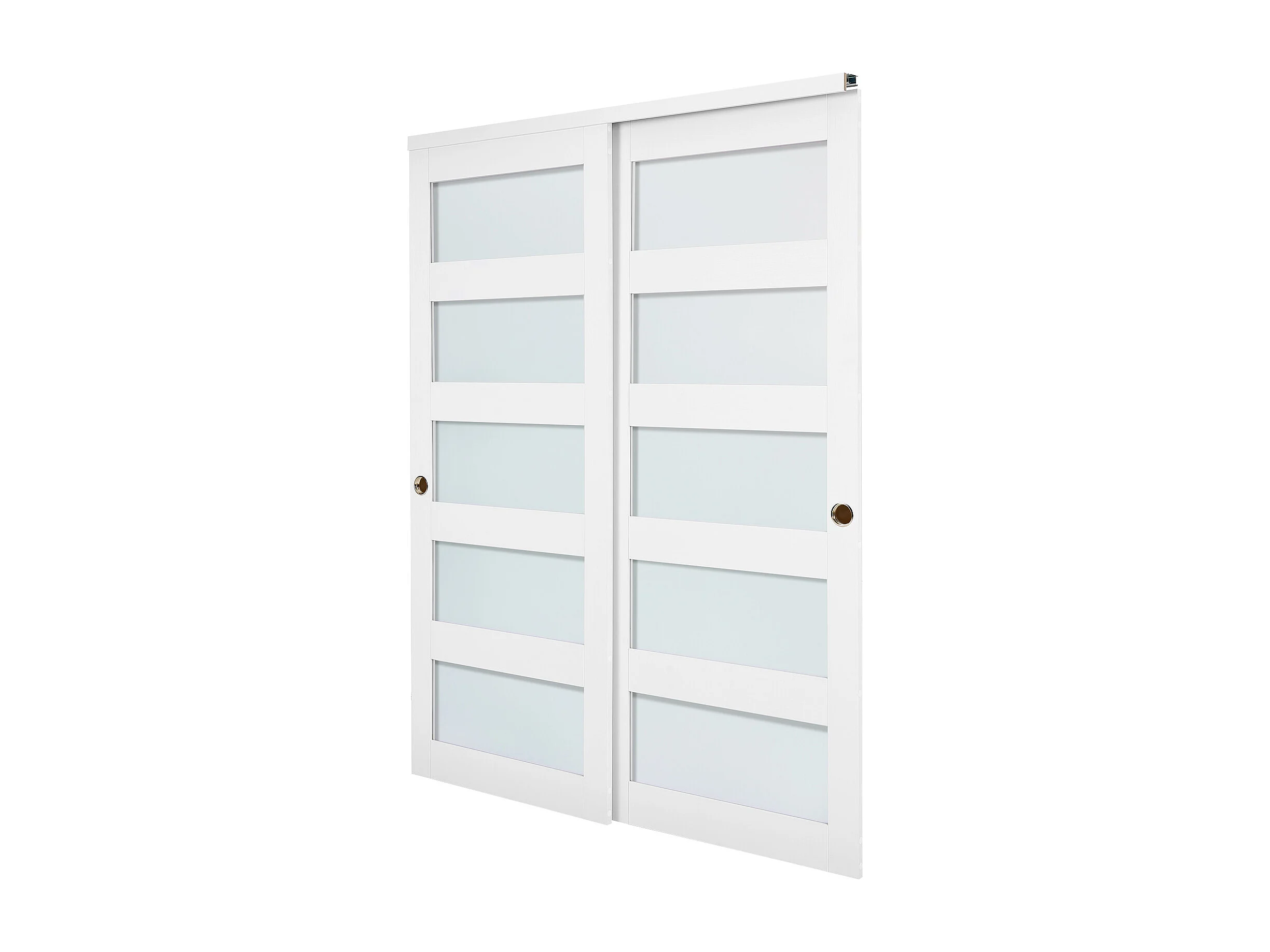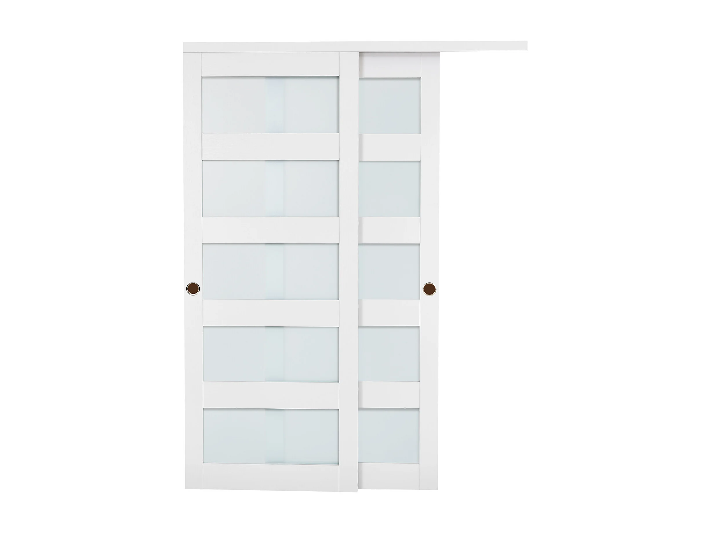 Puerta Corredera SucceBuy de Armario 152,4 x 203,2 cm, Puerta Doble de Armarios en Vidrio Esmerilado de 5 Paneles, con Kit de Herrajes y Carril de Suelo
