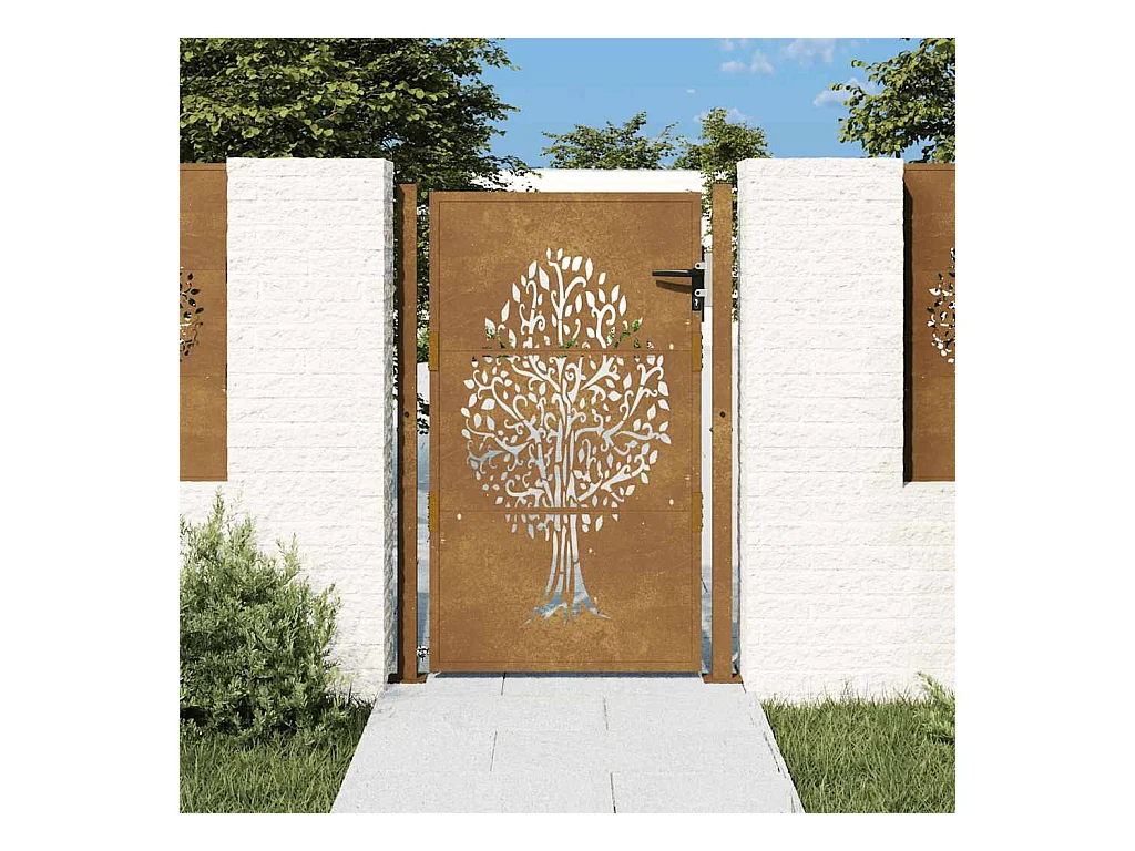 Puerta de jardín 105x130 cm acero corten diseño árbol
