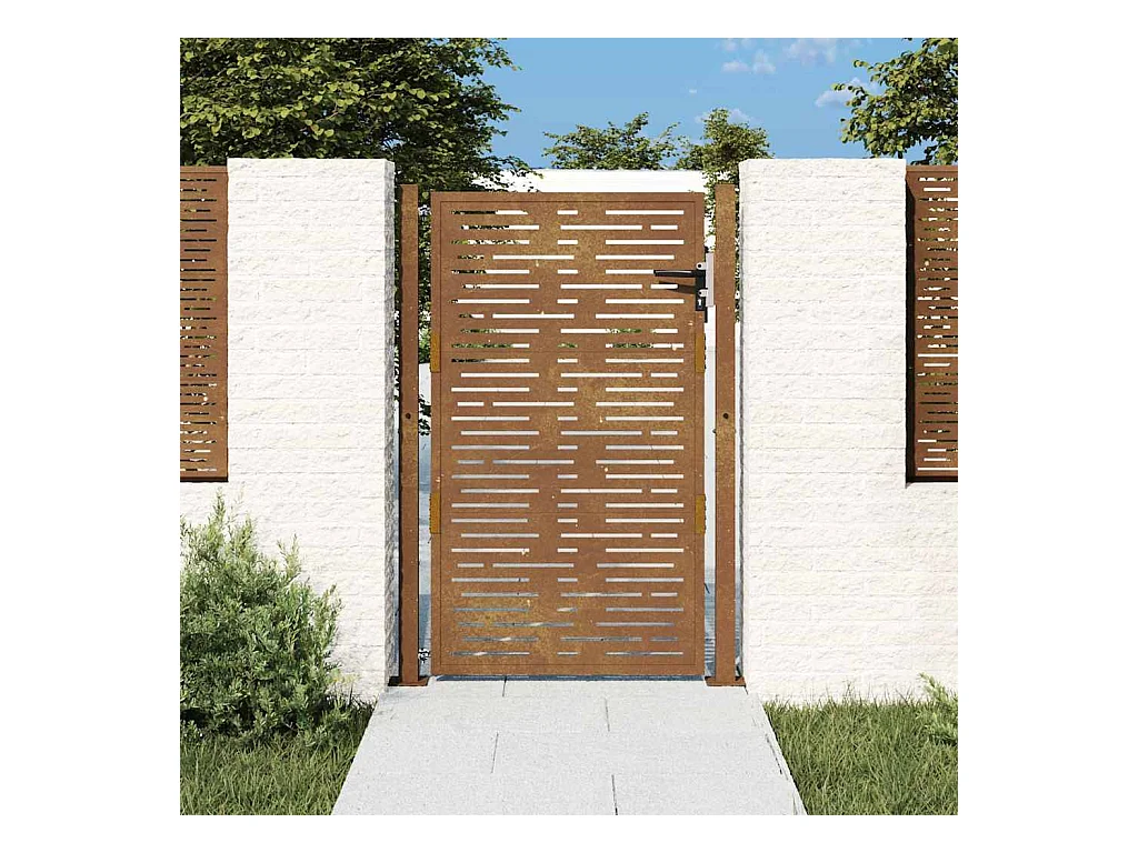 Puerta de jardín de acero corten de 105 x 130 cm.