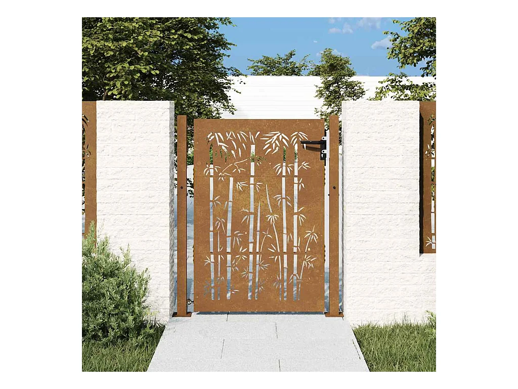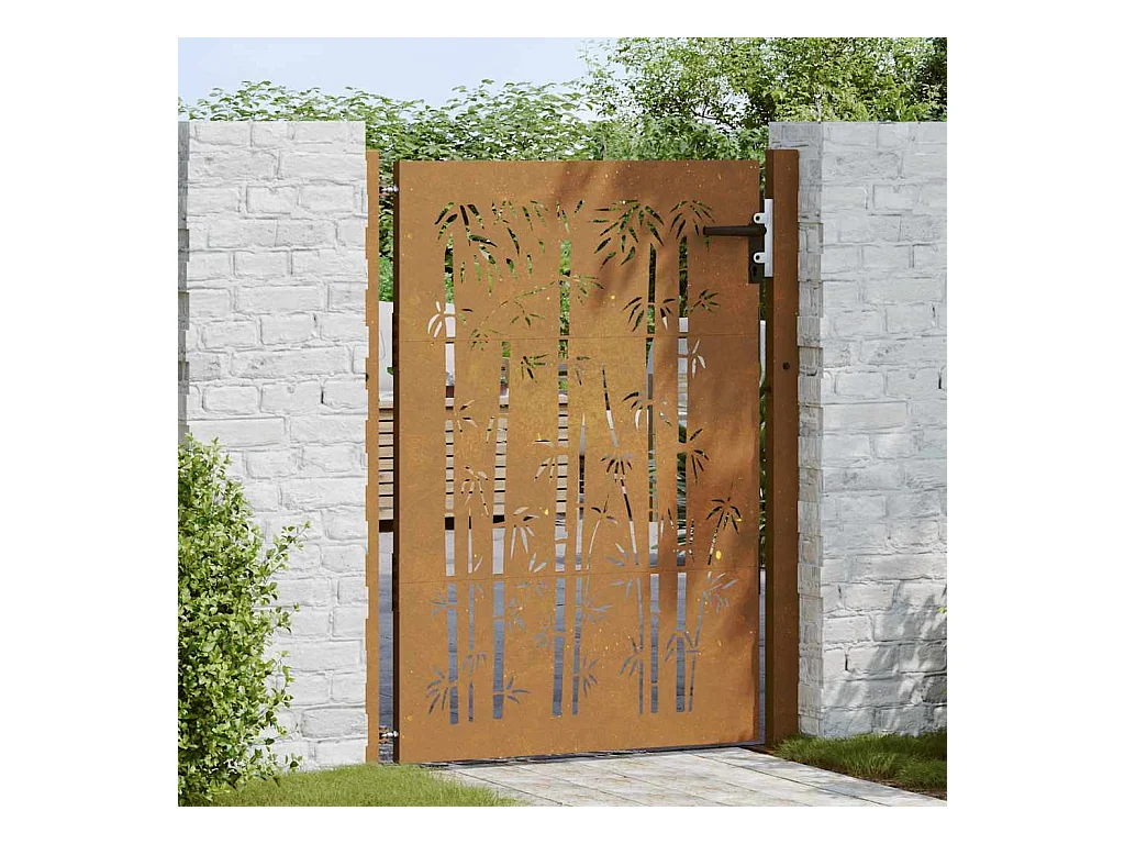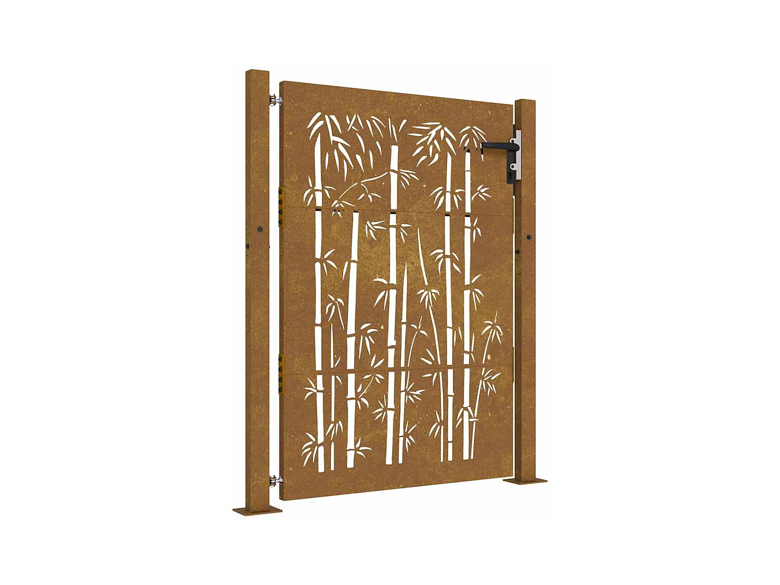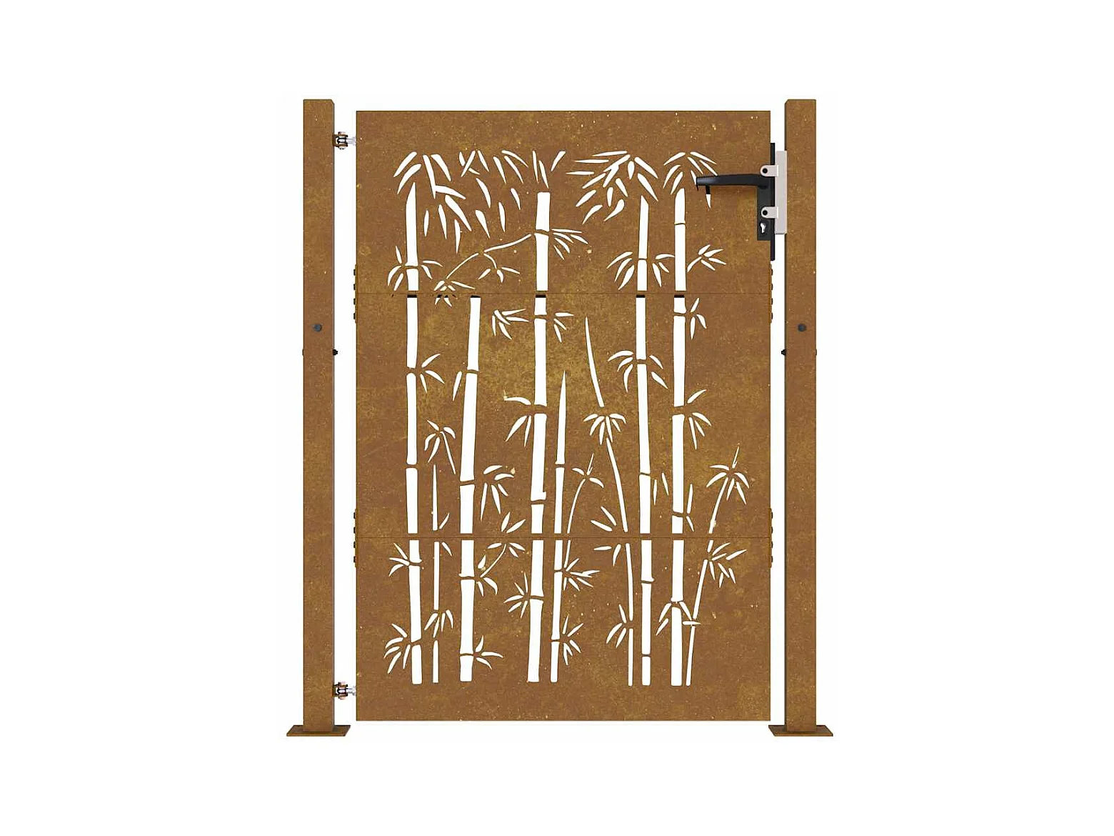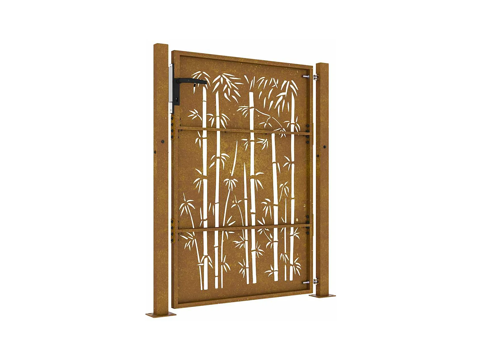 Puerta de jardín 105x155 cm acero corten diseño bambú