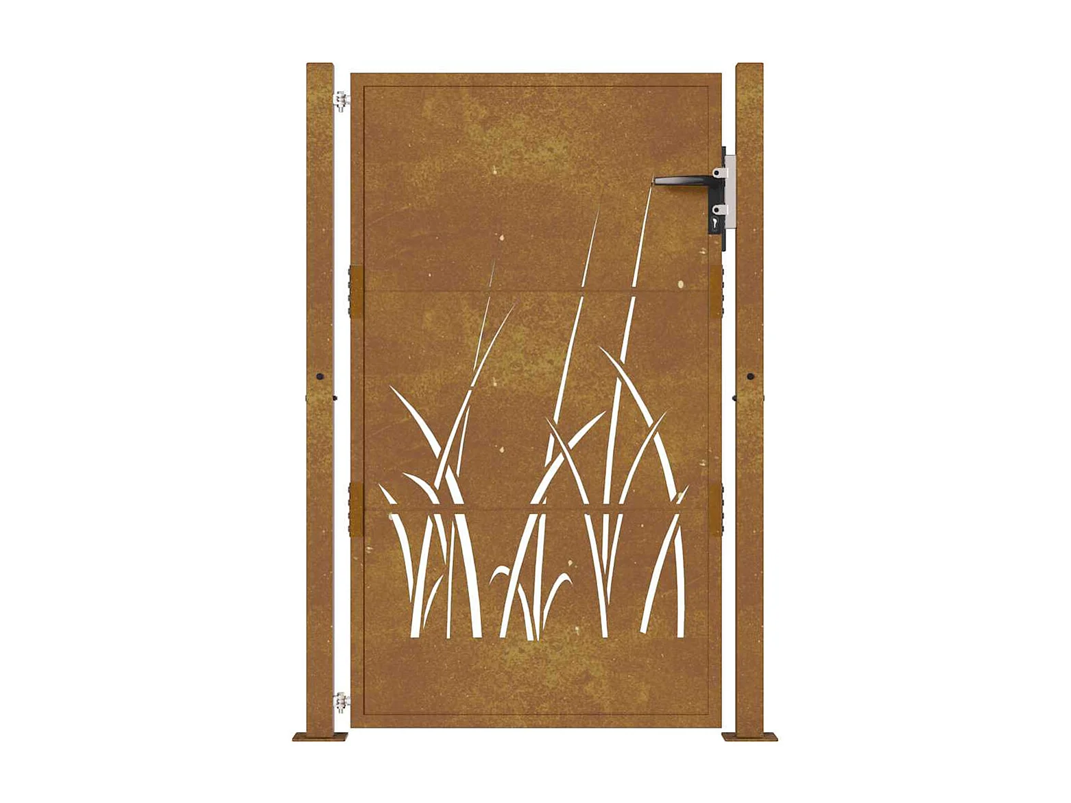 Puerta de jardín 105x155 cm acero corten diseño césped