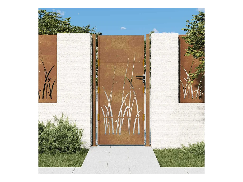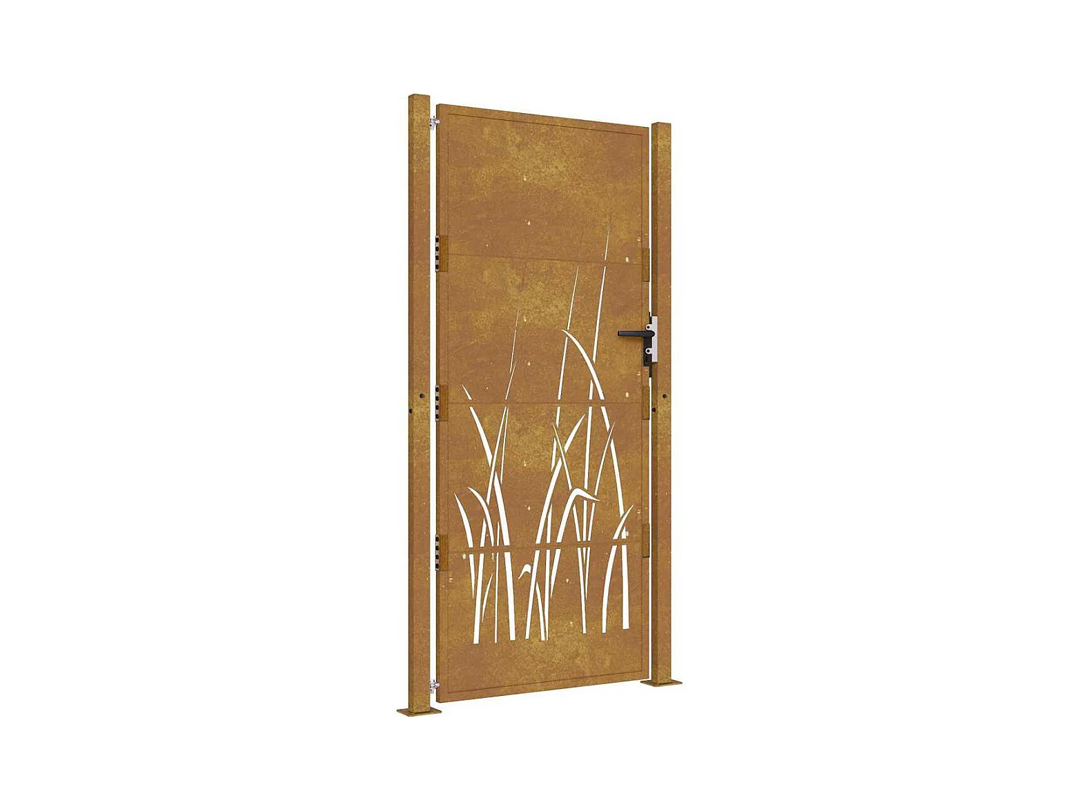 Puerta de jardín 105x180 cm acero corten diseño césped