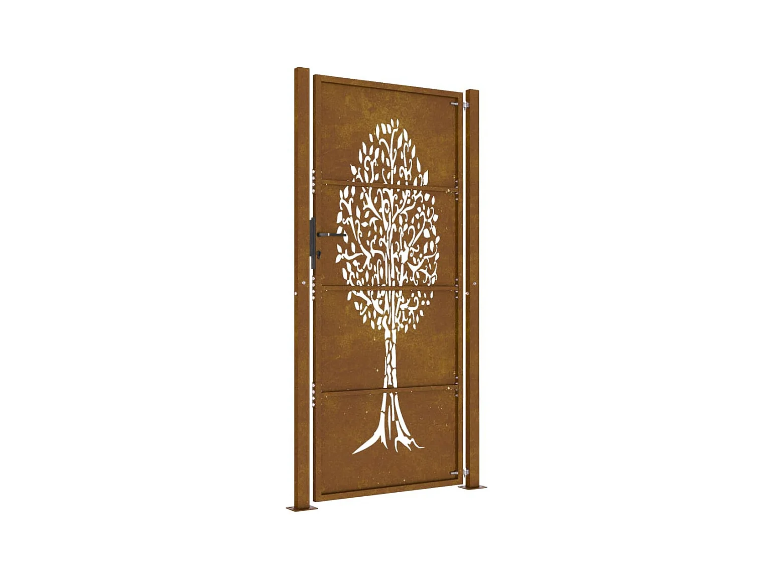 Puerta de jardín 105x205 cm acero corten diseño arbol
