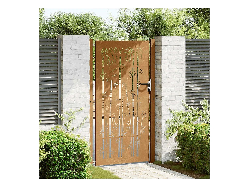 Puerta de jardín 105x205 cm acero corten diseño bambú