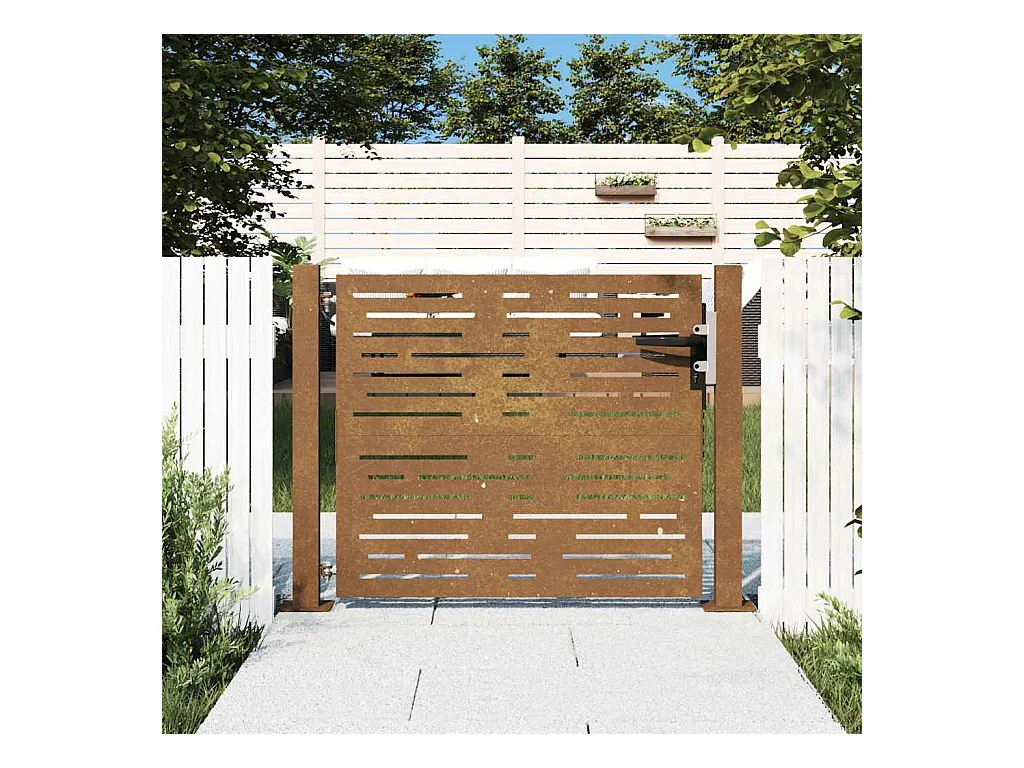 Puerta de jardín 105x80 cm acero corten diseño cuadrado