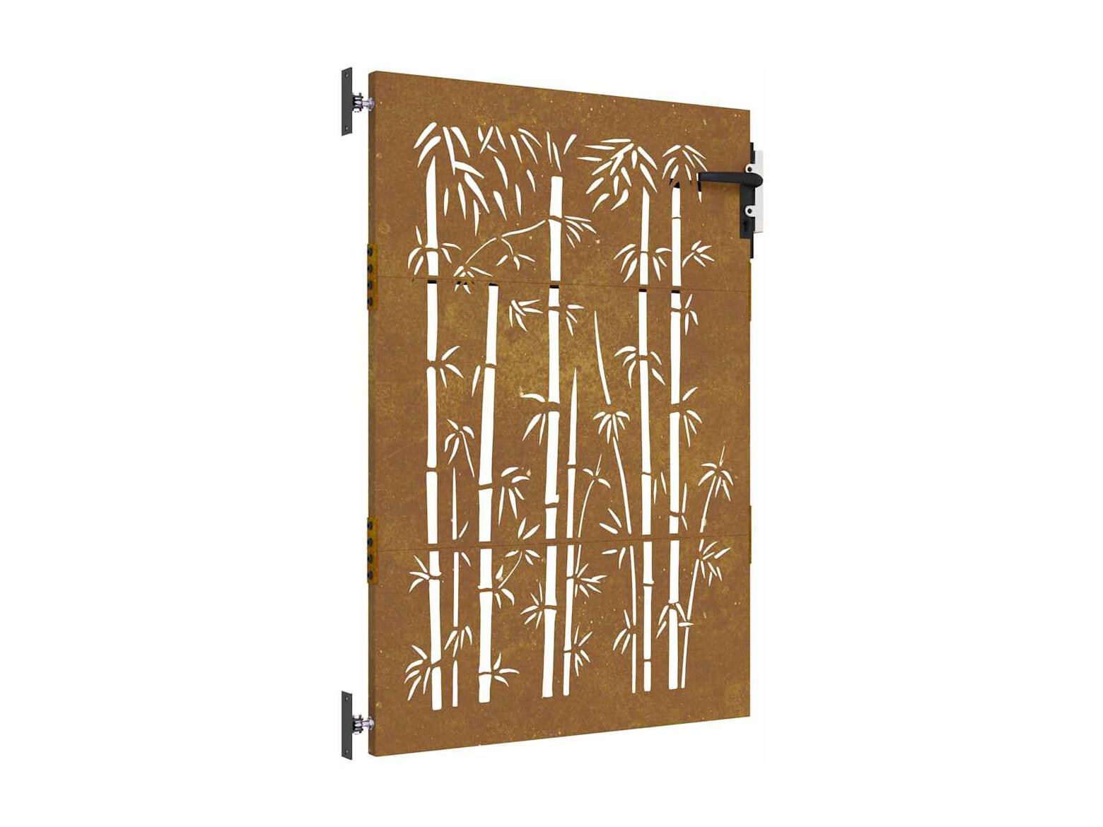 Puerta de jardín 85x175 cm acero corten diseño bambú