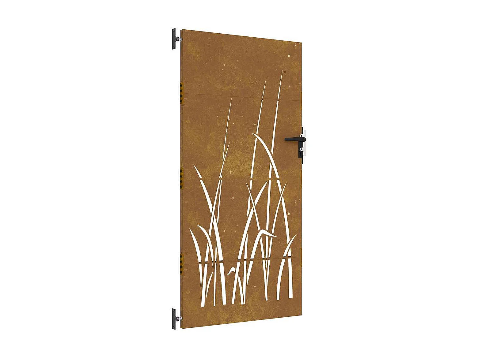 Puerta de jardín 85x200 cm de acero corten con diseño de césped.