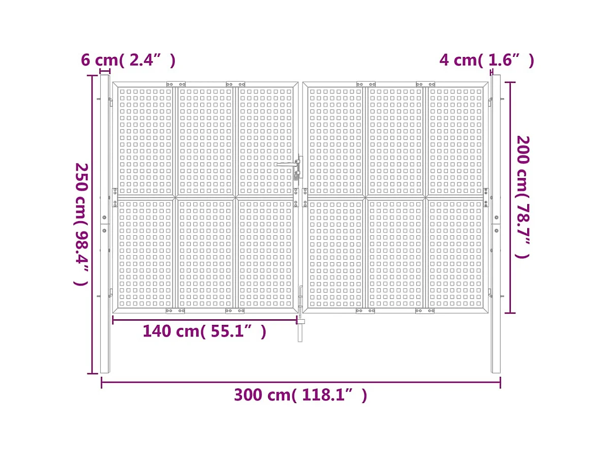 Puerta de jardín antracita de acero de 300 x 200 cm.