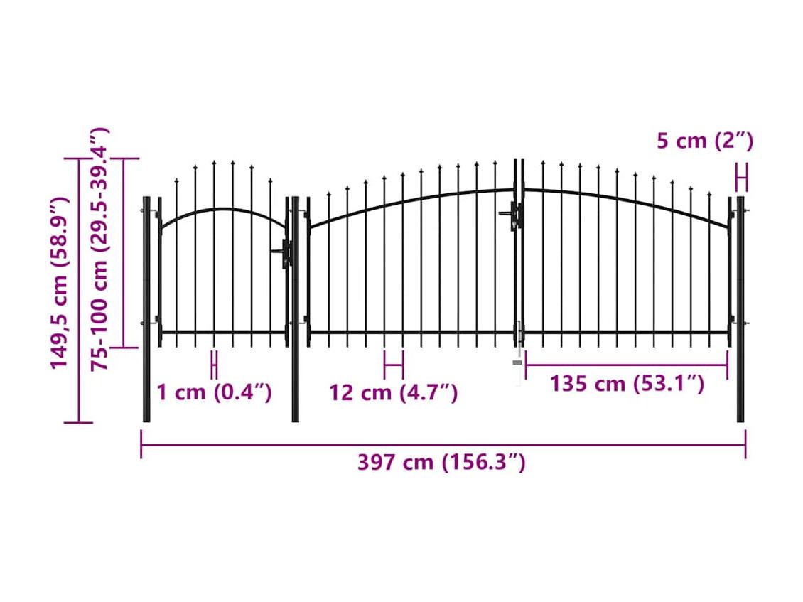 Puerta de valla arqueada con 2 postes, 105 x 204 cm, color negro