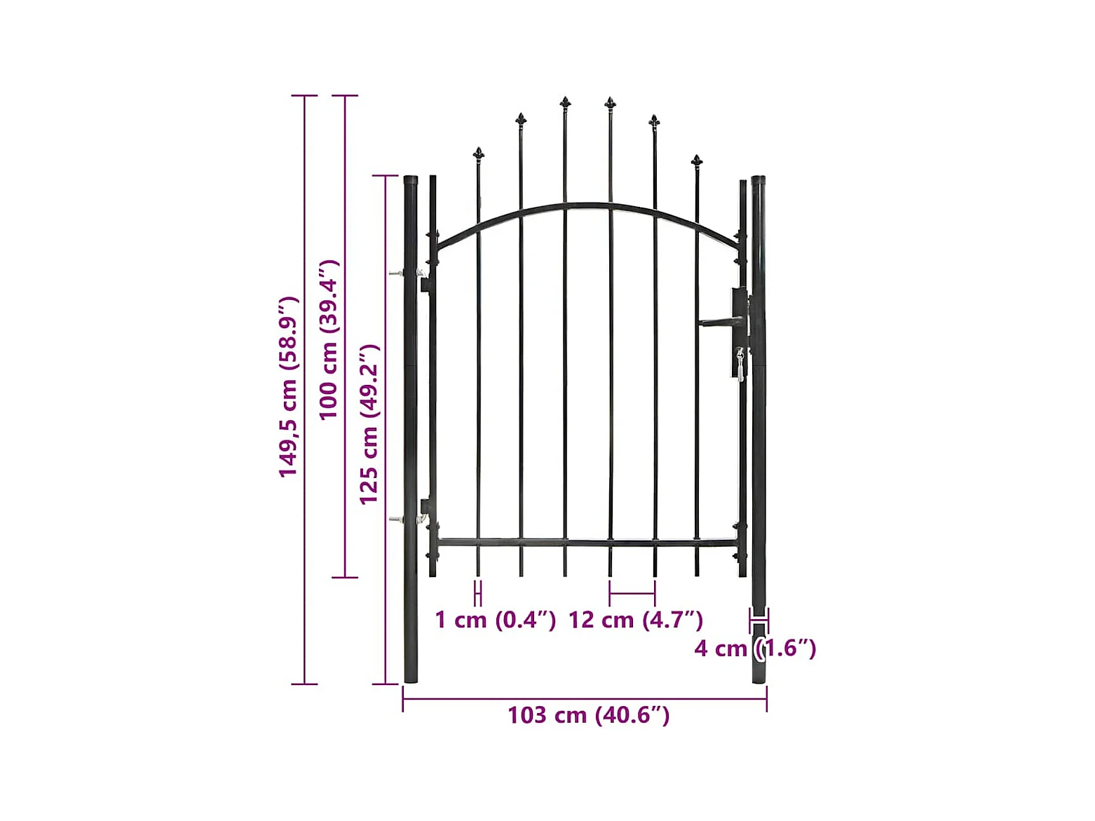 Puerta de valla con arco superior de acero 104 x 150 cm color negro