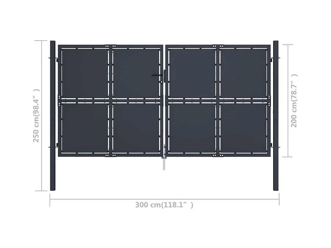 Puerta de jardín de acero 300 x 125 cm Antracita