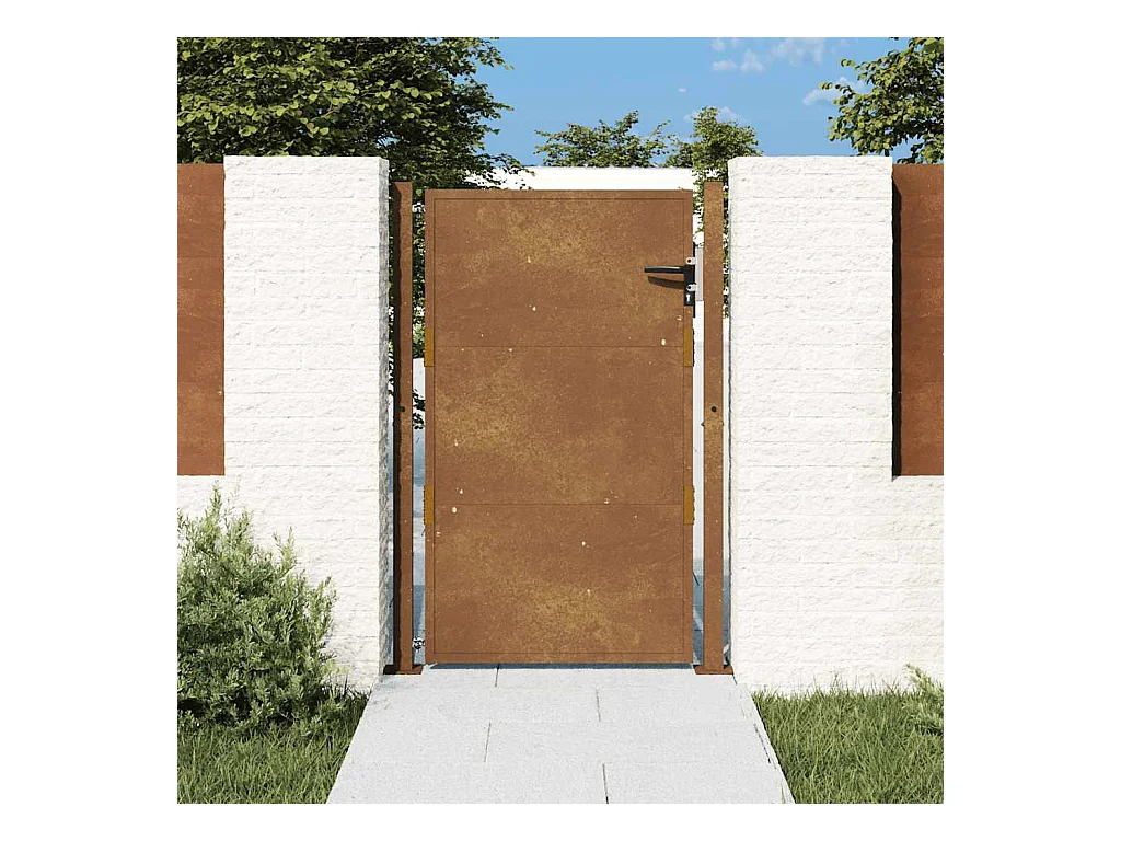 Puerta de jardín 105x130 cm acero corten diseño césped