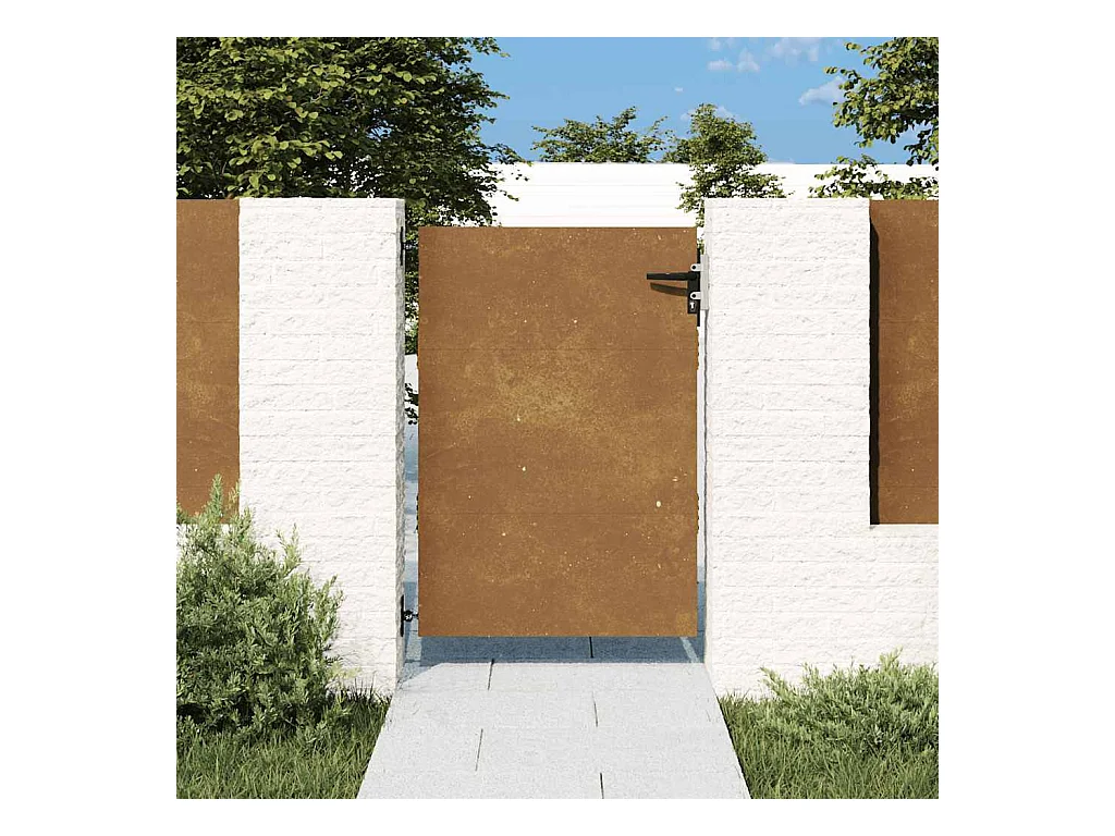 Puerta de jardín de acero corten de 85 x 175 cm.