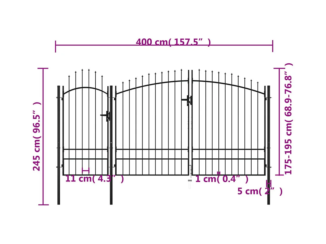 Puerta simple con remate en punta Acero 1x1,5 m Negro