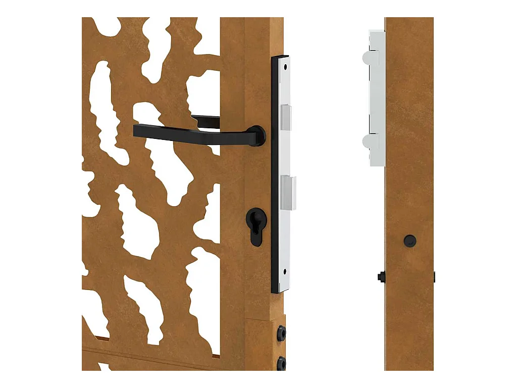 Puerta de jardín de acero resistente a la intemperie con diseño de hojas.