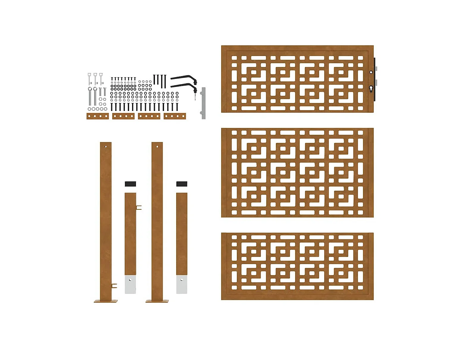 Puerta de jardín de acero resistente a la intemperie con diseño de tracería