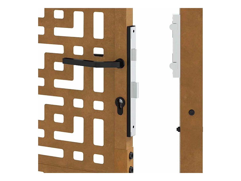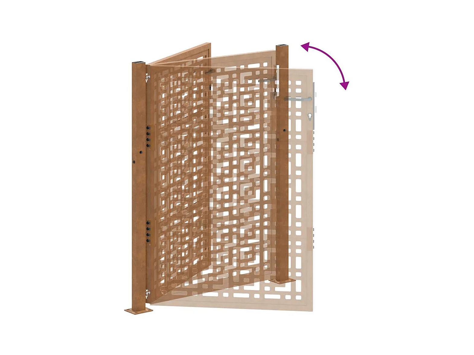 Puerta de jardín de acero resistente a la intemperie con diseño de hojas.