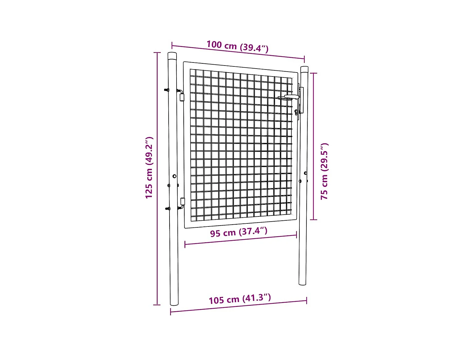 Puerta de jardín de malla de acero galvanizado 100 x 150 cm Gris