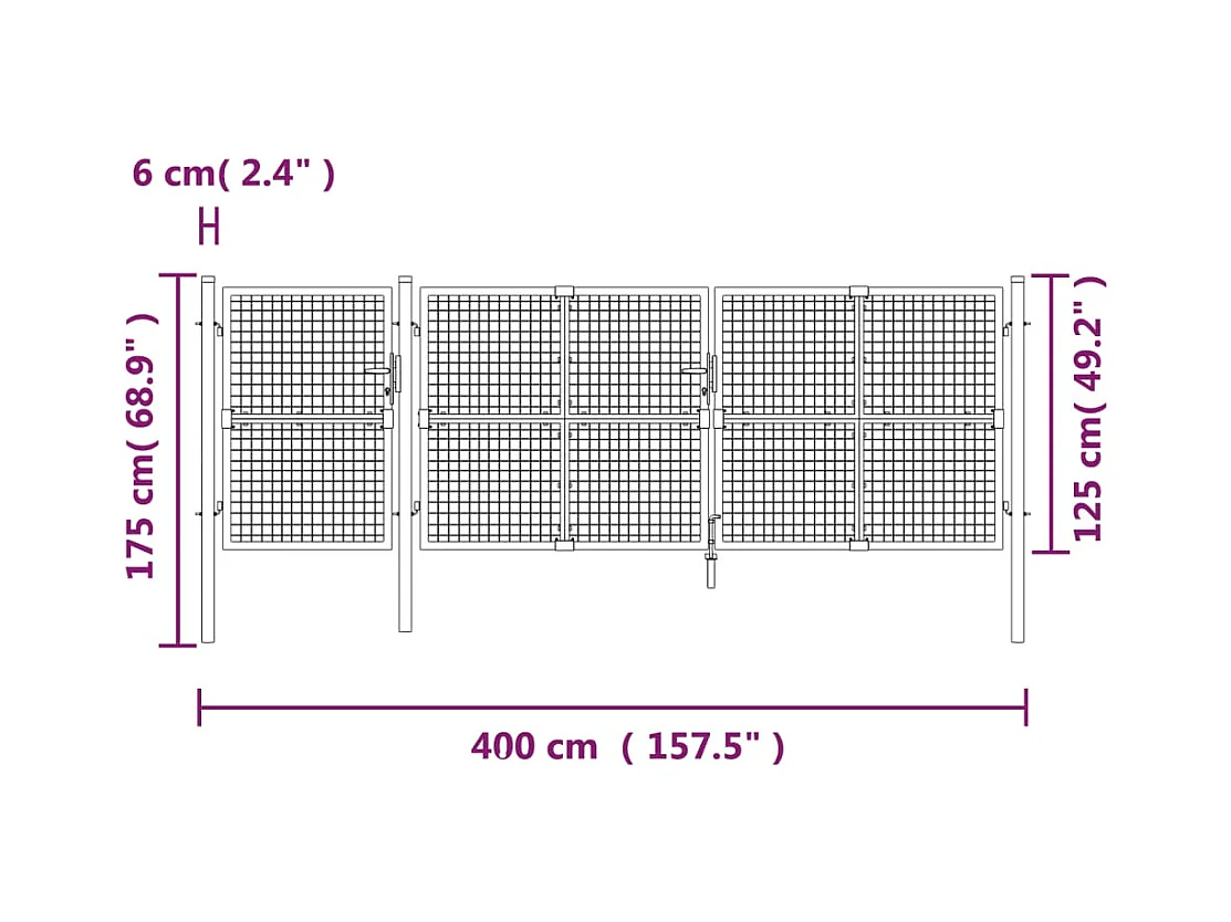 Puerta de jardín de malla verde 400x175 cm de acero galvanizado